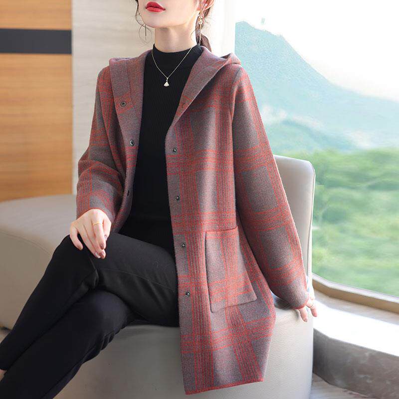 秋冬年轻妈妈装女中长款格子毛呢外套胖MM加肥加大码双面羊绒大衣