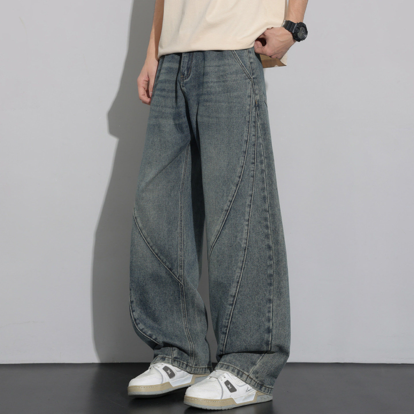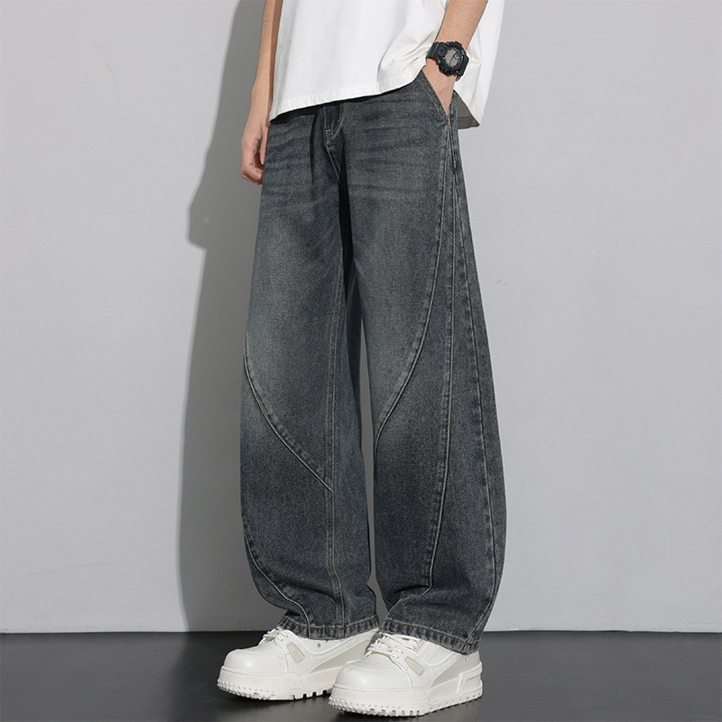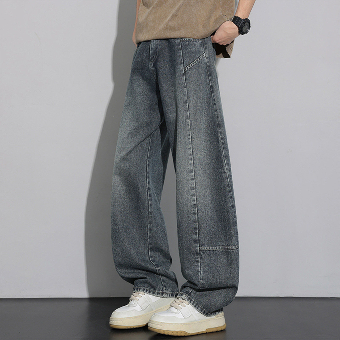 春秋季青少年潮牌牛仔裤男初中高中学生宽松直筒休闲裤男装长裤子
