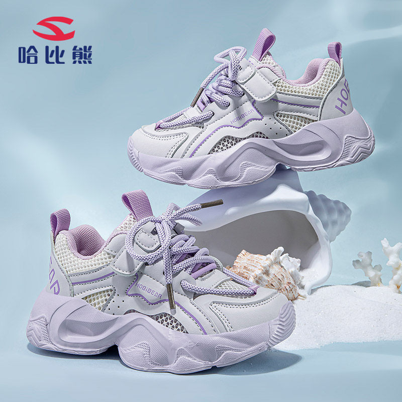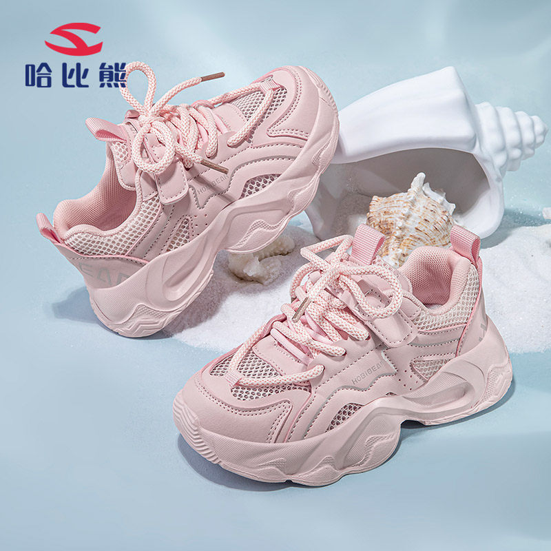 哈比熊春夏季儿童老爹鞋2026新款女童运动鞋复古百搭透气网面休闲
