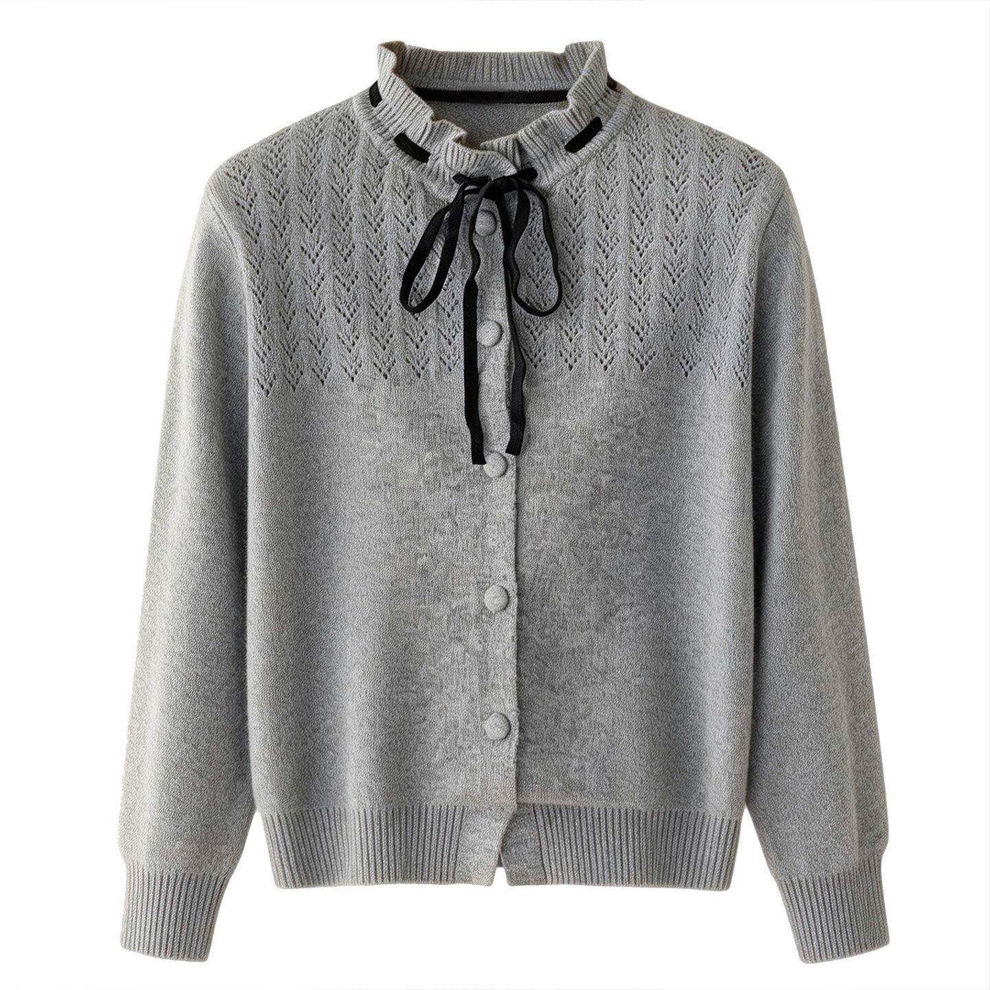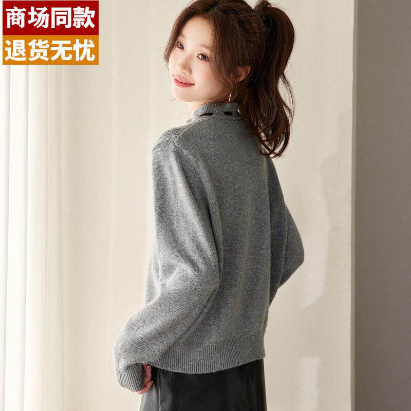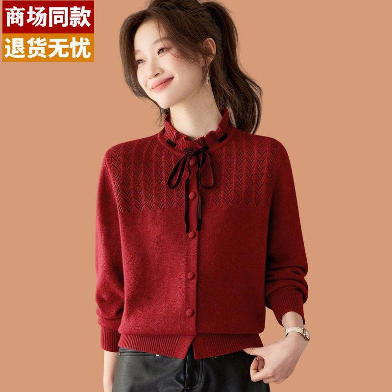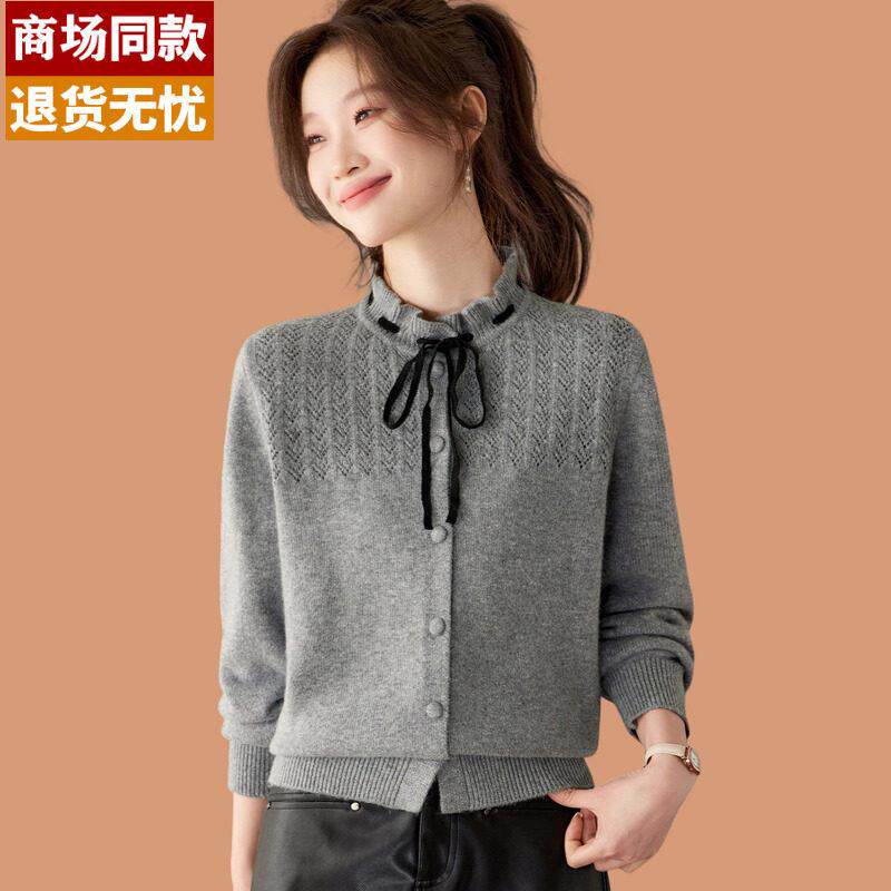 短款毛衣女款2026新款蝴蝶结木耳领小香风内搭打底衫羊毛开衫外套