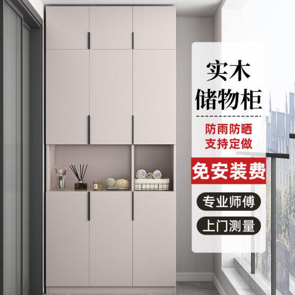 实木放阳台储物柜防晒防水收纳柜杂物柜子定制尺寸落地高柜置物柜