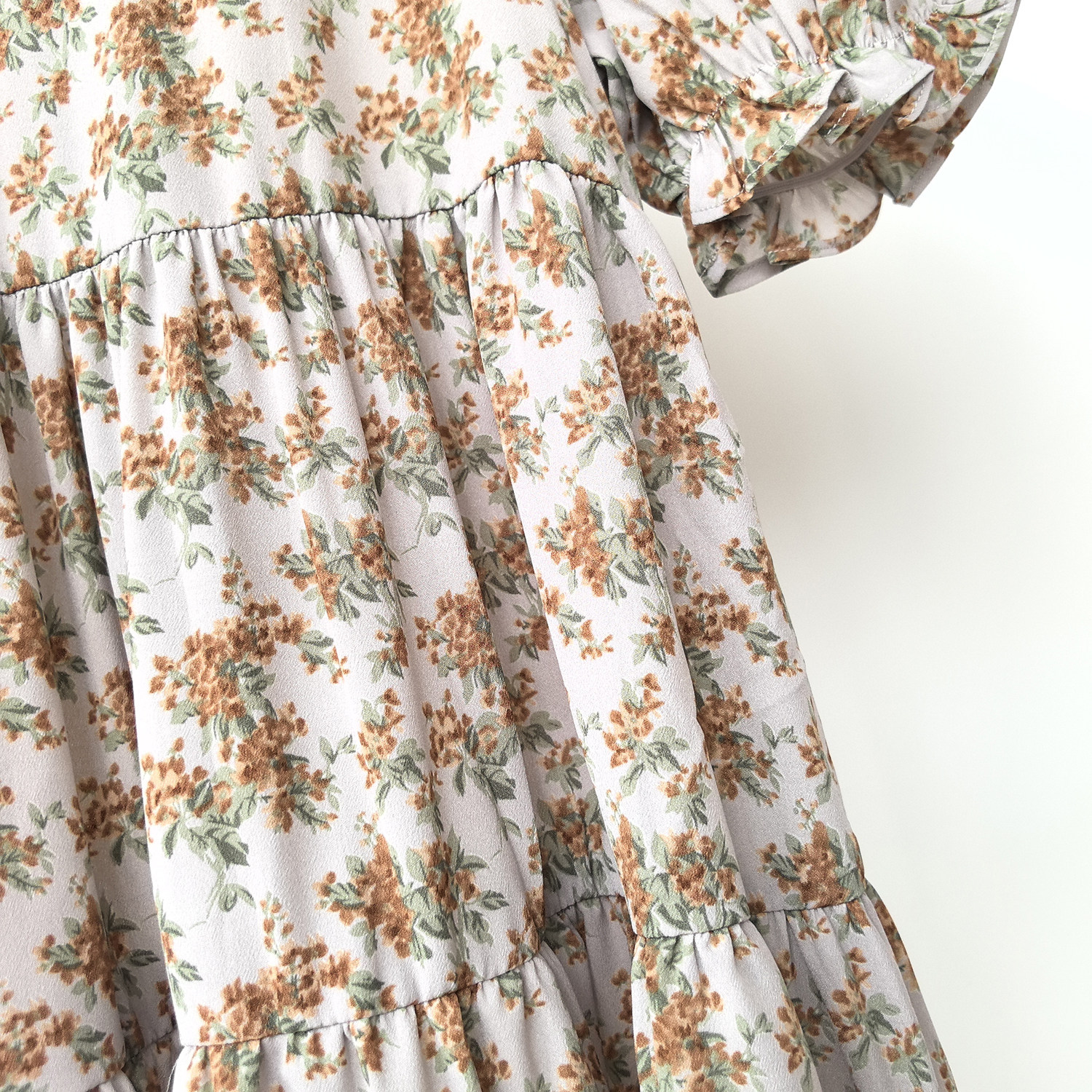 ZUH* 120-170 女童短袖连衣裙夏季小女孩雪纺碎花公主裙子中大童