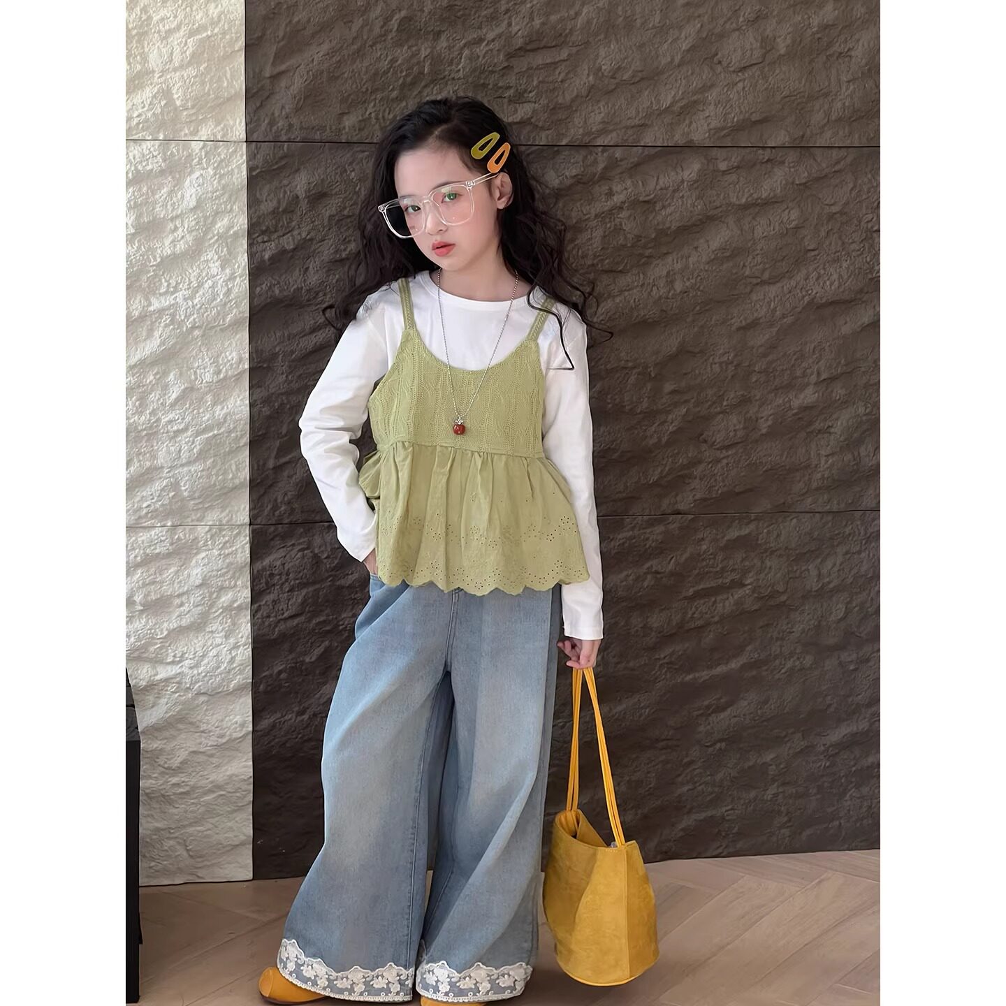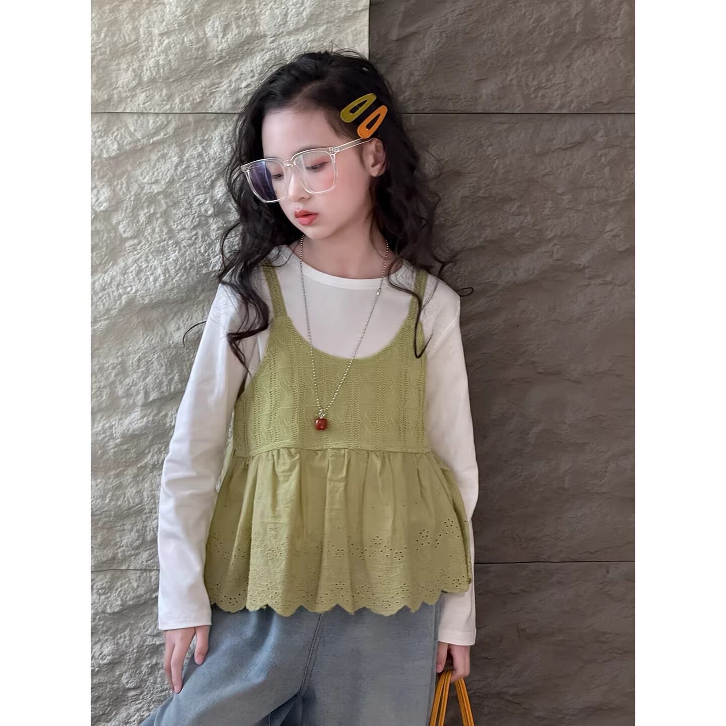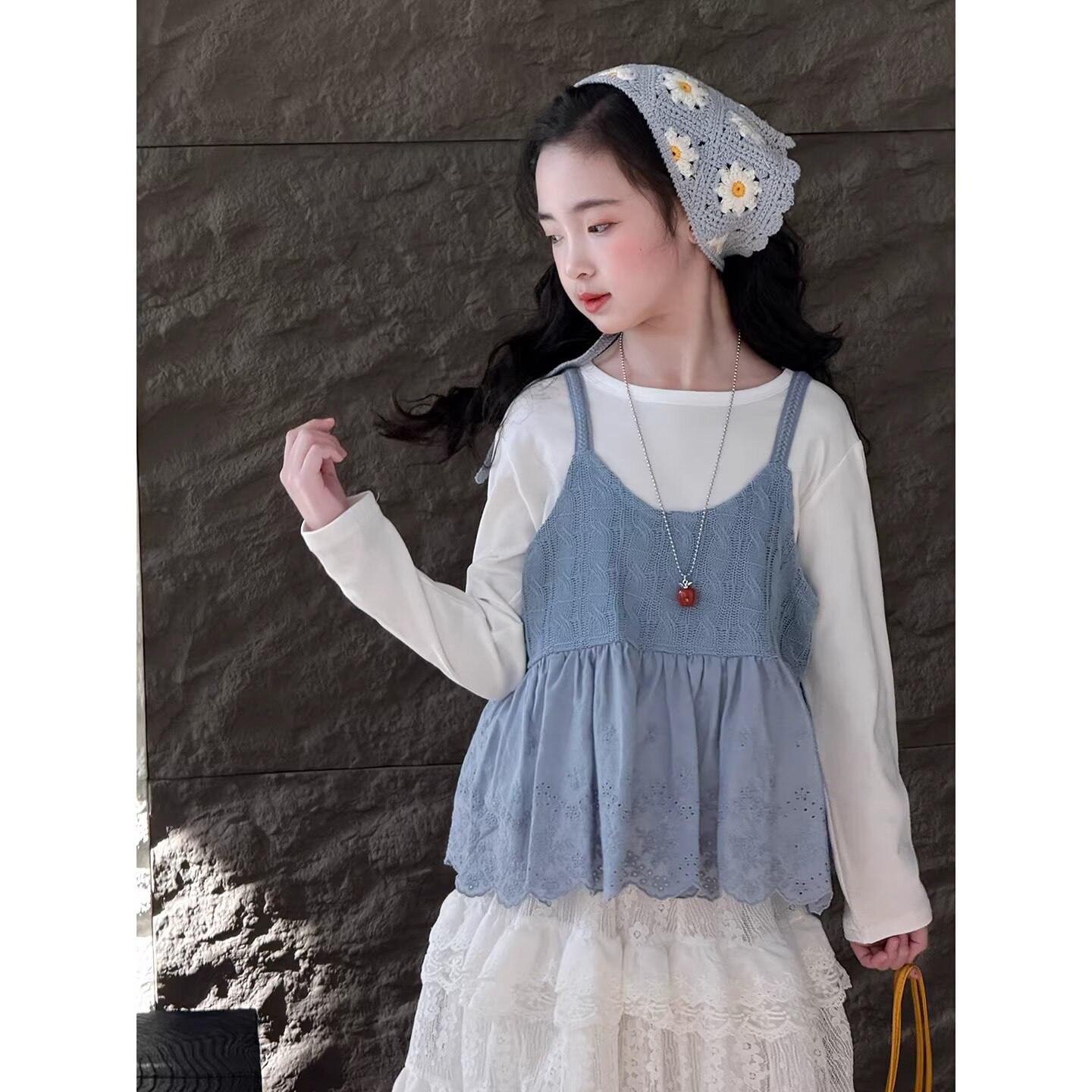 女童套装2026春季新款儿童外穿背心春装中大童韩版吊带打底衫长袖