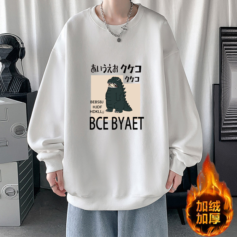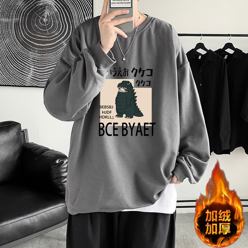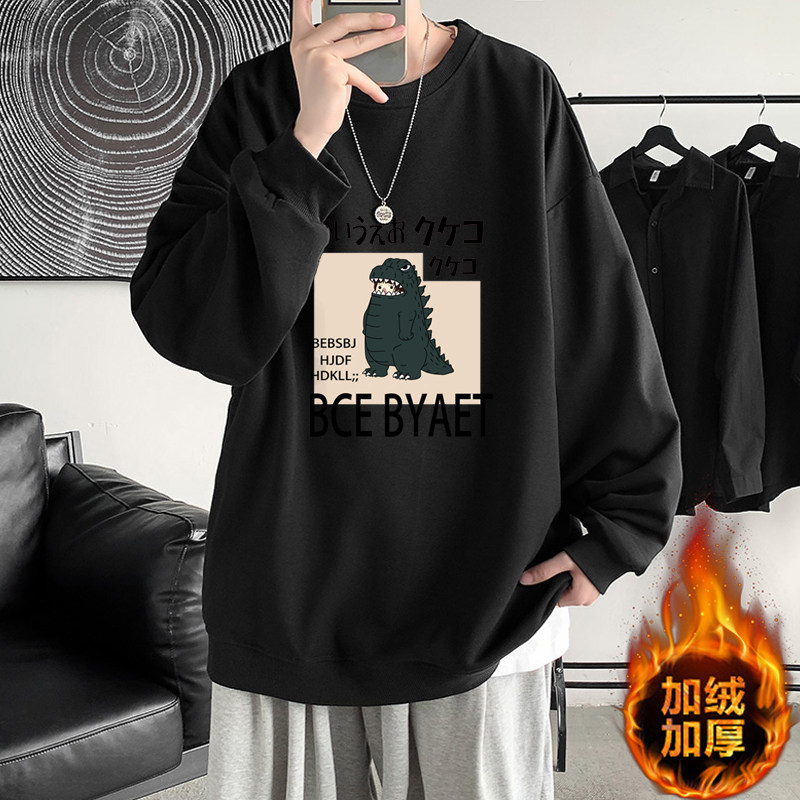 冬季青少年男生加绒无帽卫衣男初中高中学生不带帽保暖加厚秋冬款