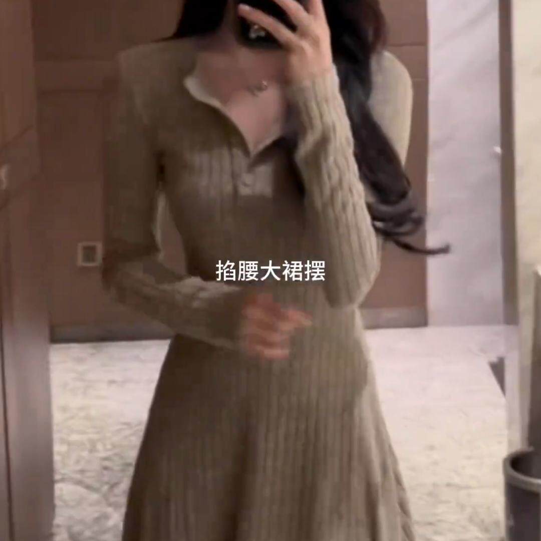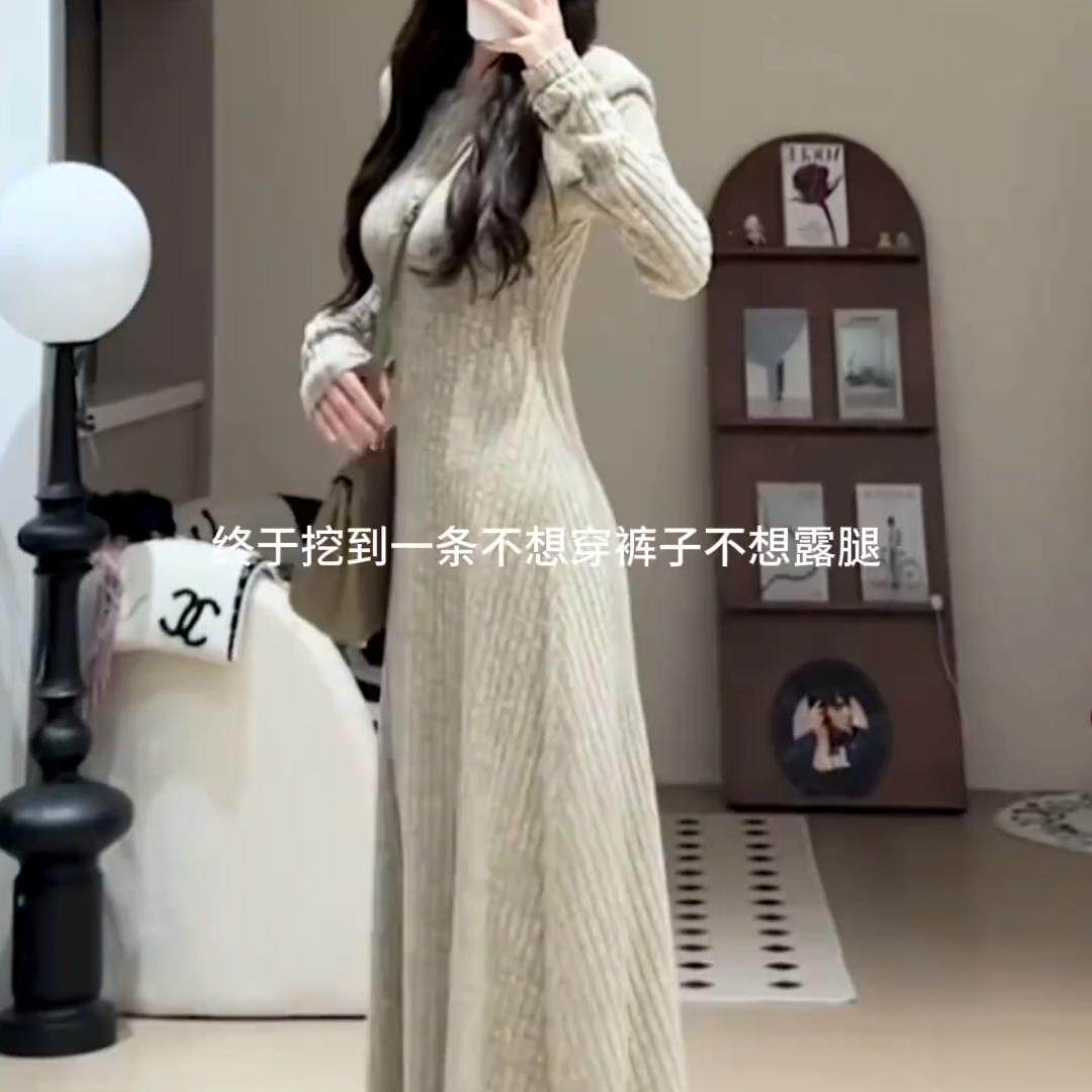 大码胖mm加绒长袖针织连衣裙女冬季独特气质收腰显瘦梨型身材裙子