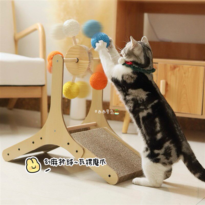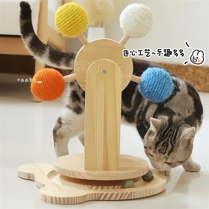猫抓板剑麻耐磨不掉屑猫咪逗猫棒自嗨解闷实木转盘猫咪玩具剑麻球