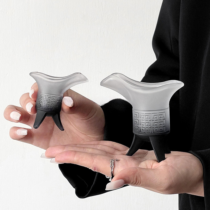 黑色古代帝王酒杯家用创意高级感搞怪秦始皇爵杯玻璃喝水杯子磨砂