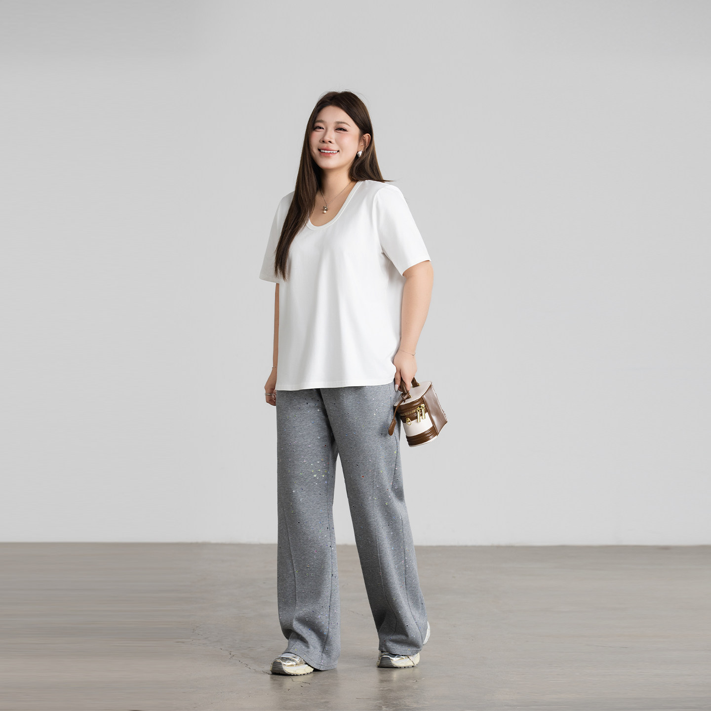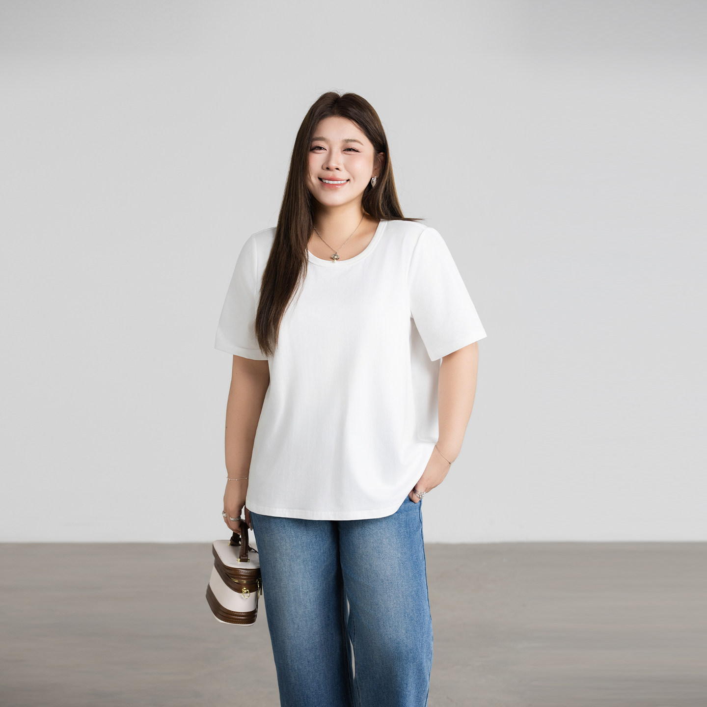 百搭纯色棉质U领正肩T恤女200斤大码胖mm宽松显瘦基础款短袖上衣