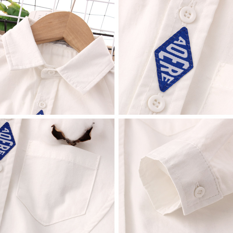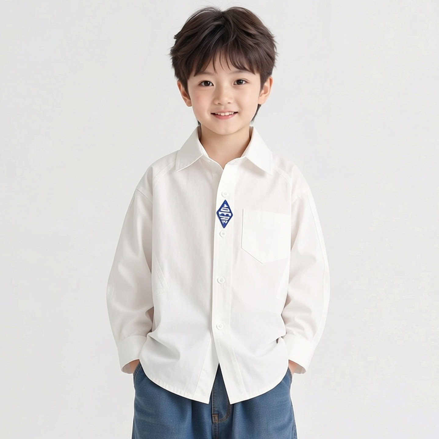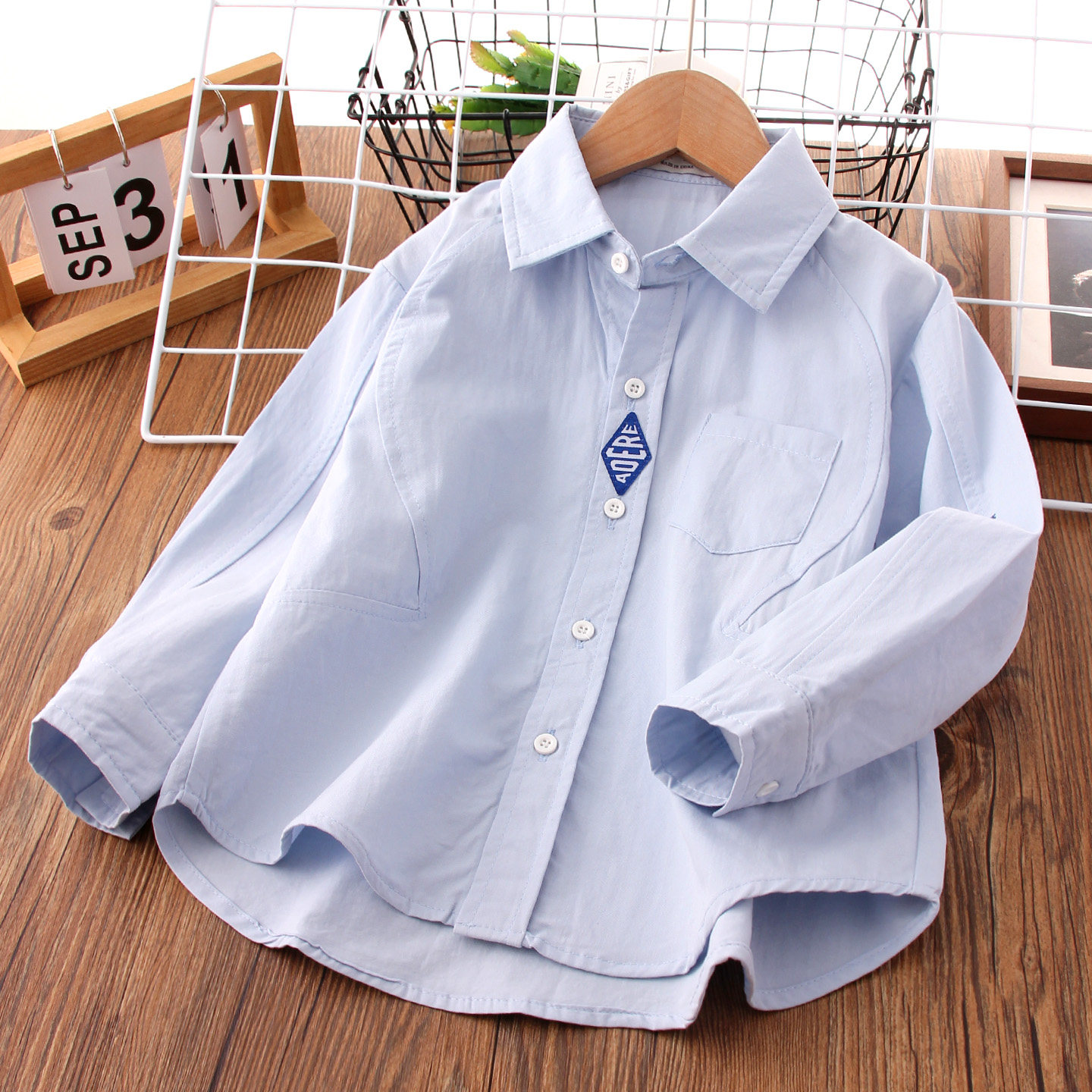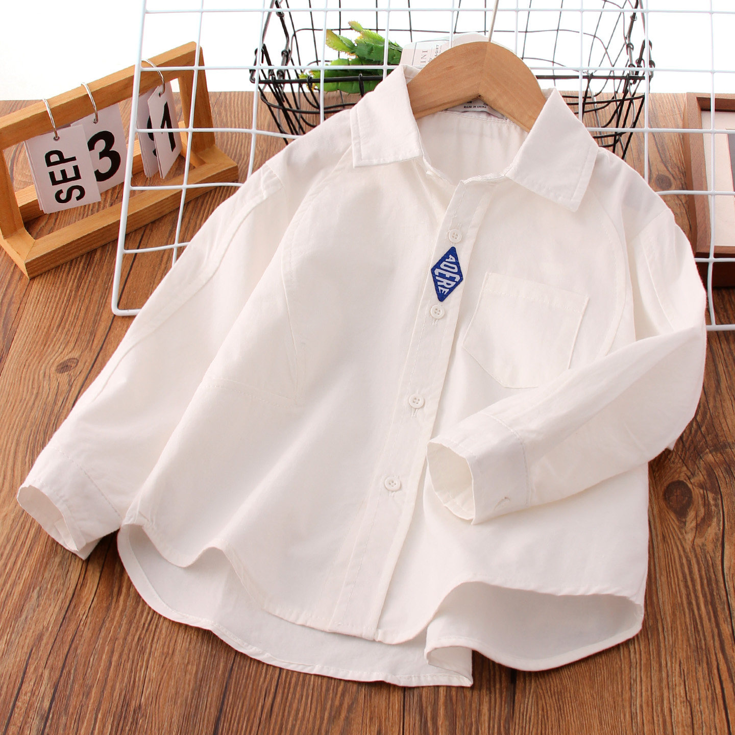 男童长袖衬衫纯棉春装新款儿童白色衬衣外套男孩春季上衣洋气薄款