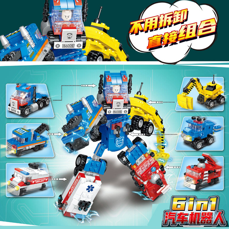 中国积木入门级汽车消防工程车益智力男孩子拼装玩具儿童礼物拼图