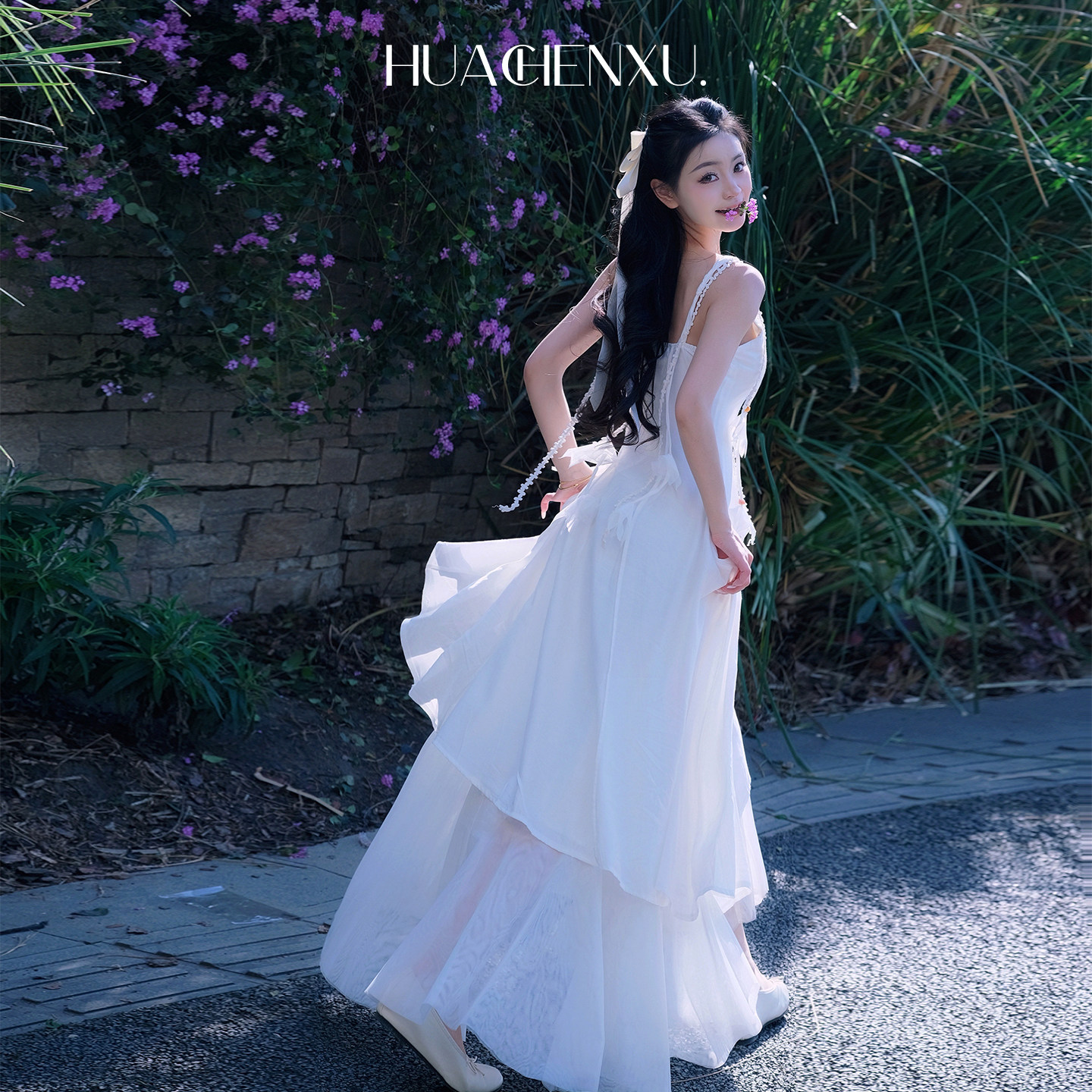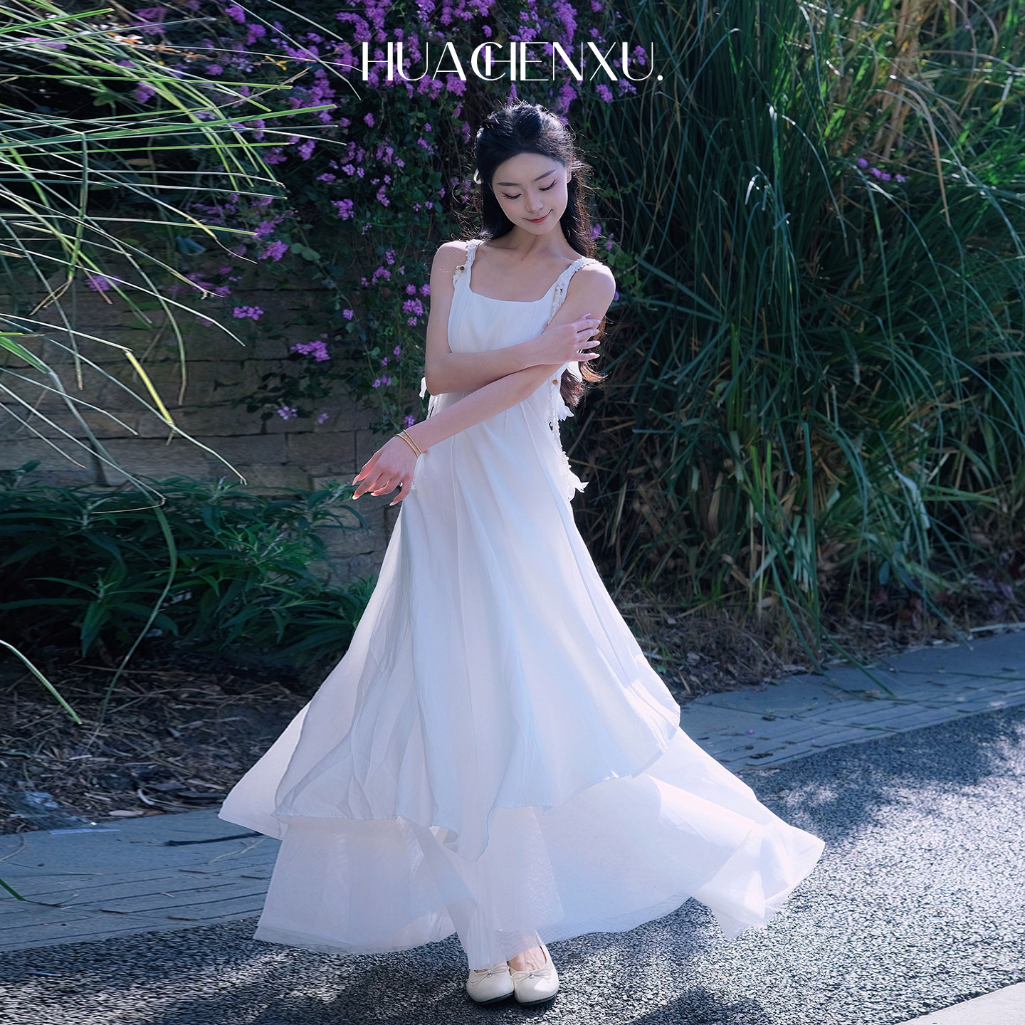 花辰序超仙白色吊带连衣裙女飘带度假风长裙仙气飘逸拼接大摆裙