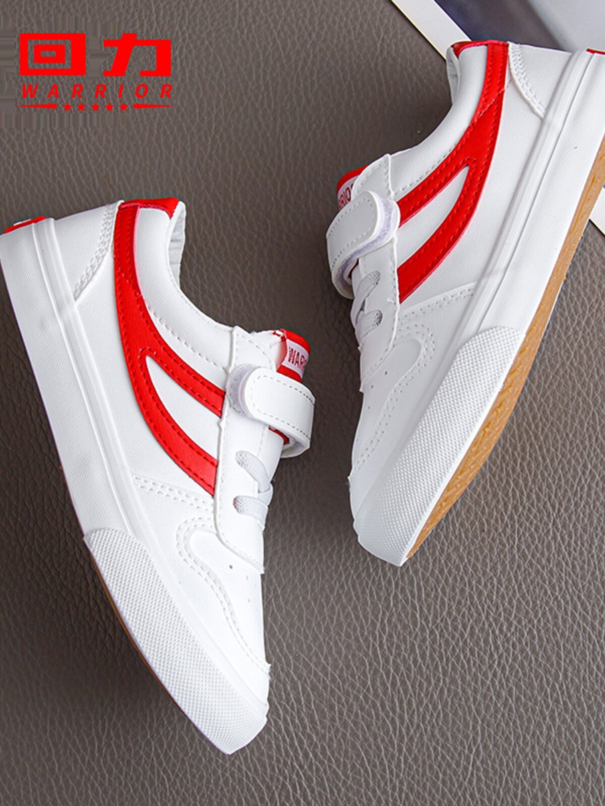 回力童鞋深圳小学生男女童板鞋宝宝纯色中大童皮面儿童小白鞋校鞋