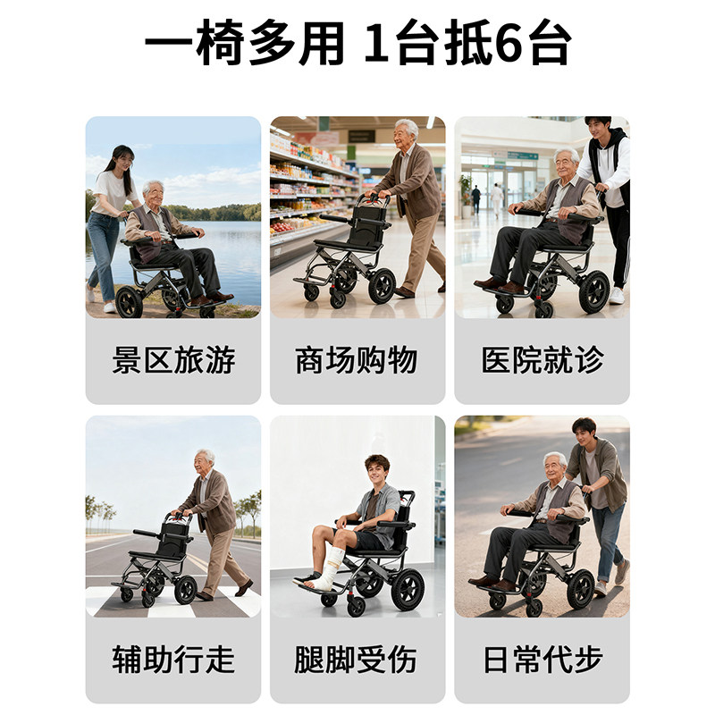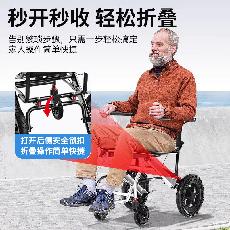 盛康轮椅轻便小型可折叠轮椅老人专用小型便携式简易超轻手推车