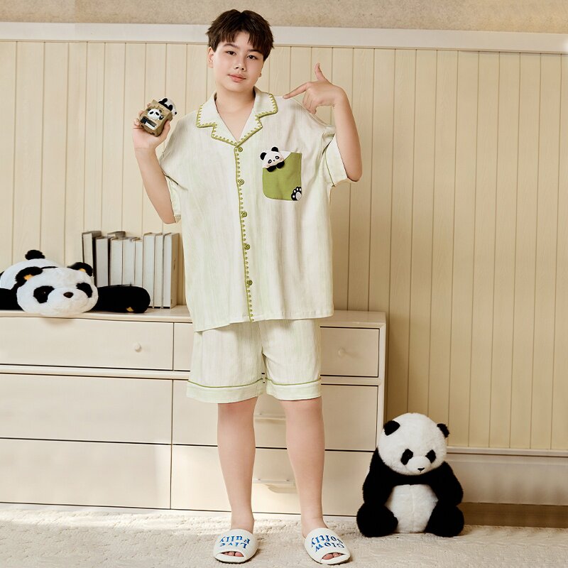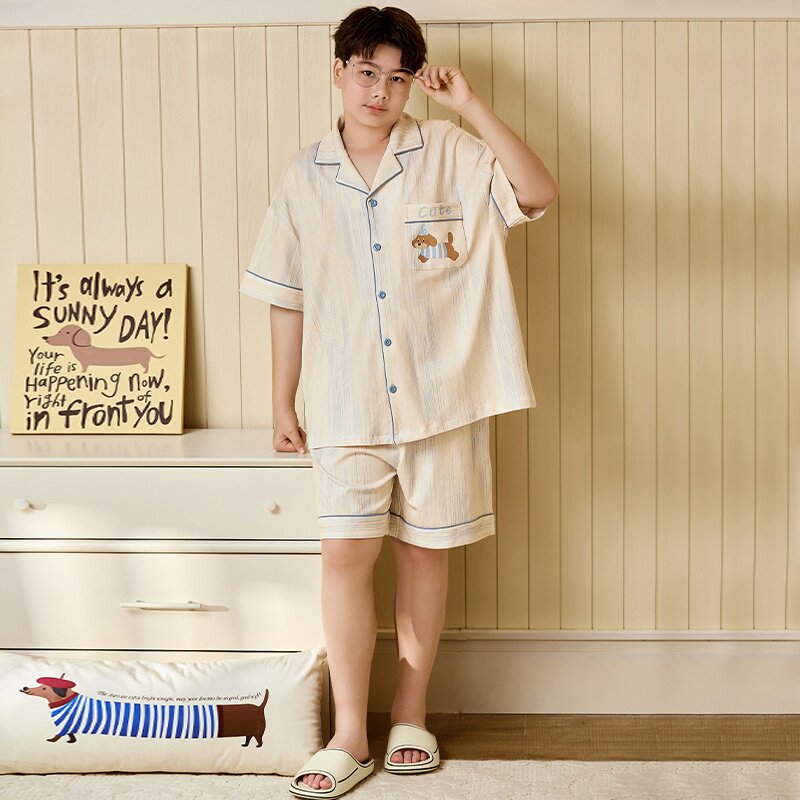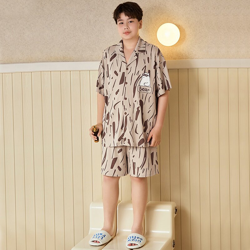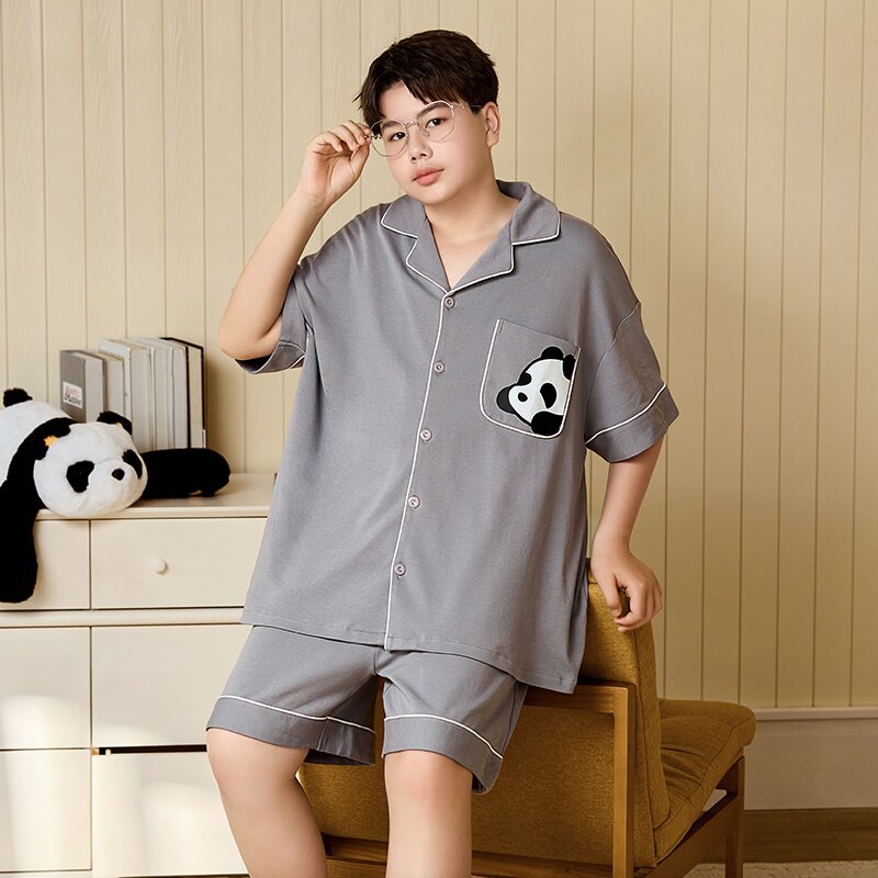 胖童睡衣男童夏季纯棉薄款短袖套装加肥加大卡通男孩青少年家居服