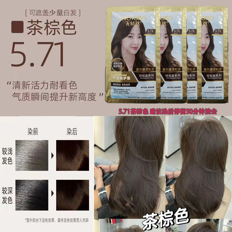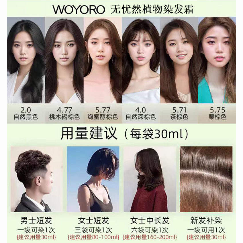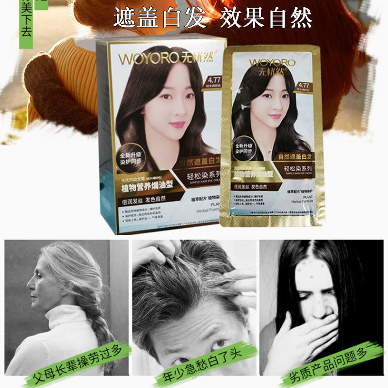 无忧然植物染发霜遮盖白发染发剂天然无刺激泡泡染小袋染发膏正品