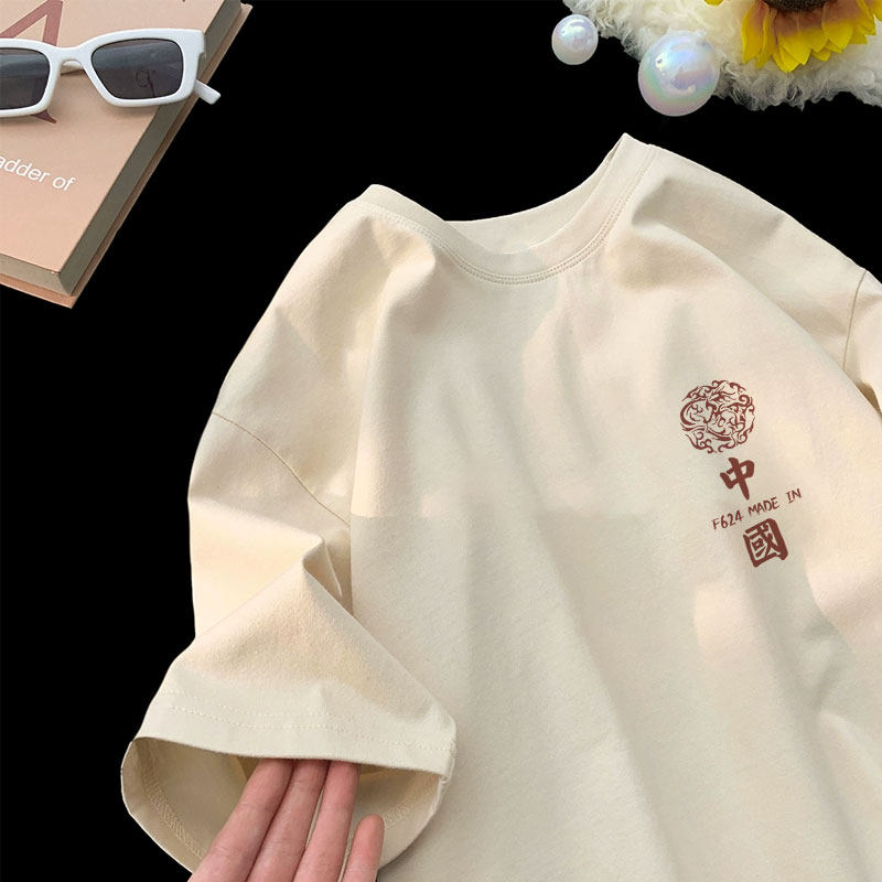 白色圆领纯棉短袖t恤男士2026新款爆款夏季青少年高端潮牌上衣服