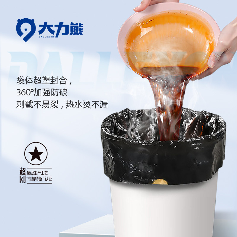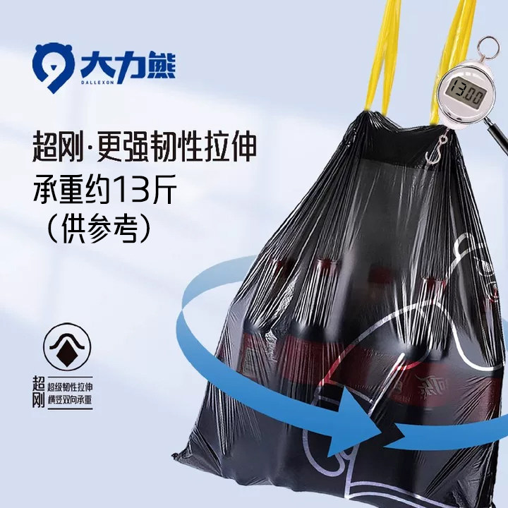 大力熊抽绳垃圾袋家用加厚手提式大号免撕厨房黑色特厚超厚实惠装