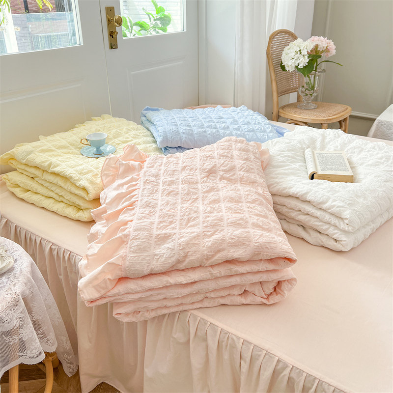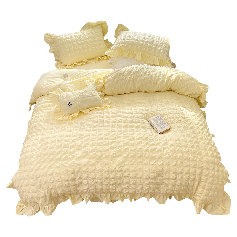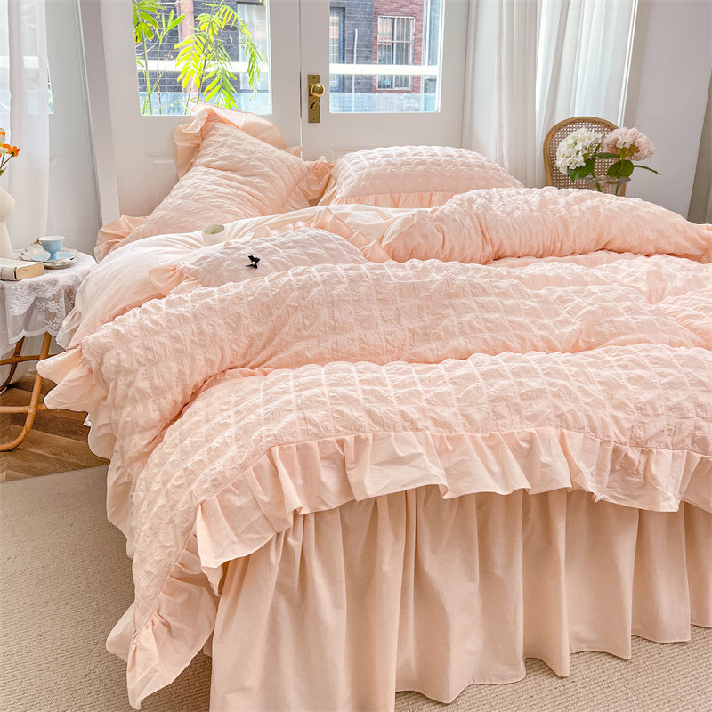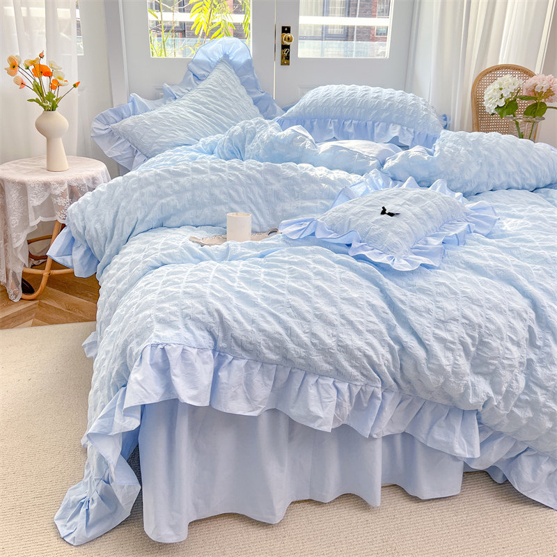 公主风泡泡纱超柔纯棉四件套软糯全棉床裙被套少女心裸睡床上用品
