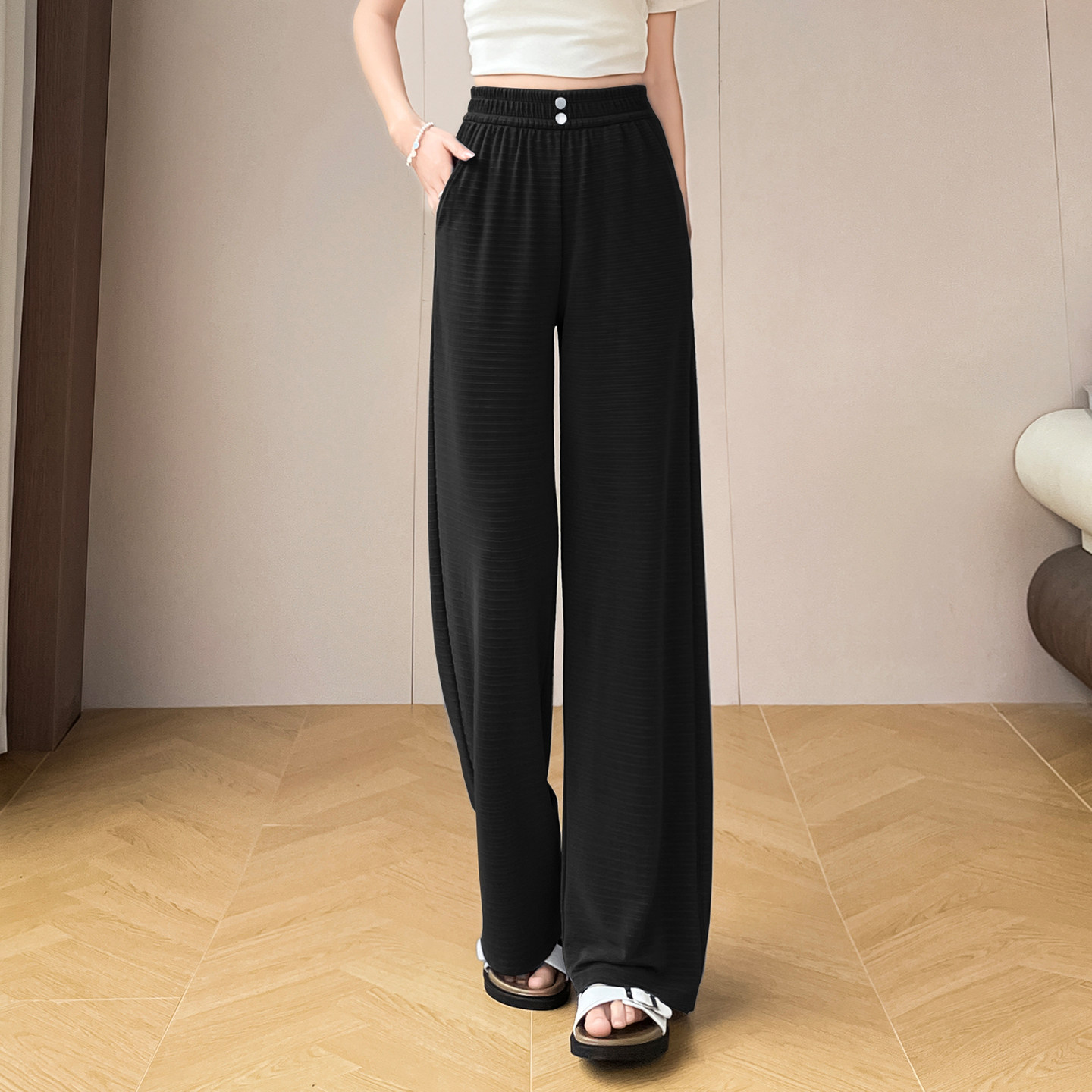 冰丝阔腿裤女夏季薄款2026新款窄版夏天直筒休闲凉凉防蚊防晒裤子