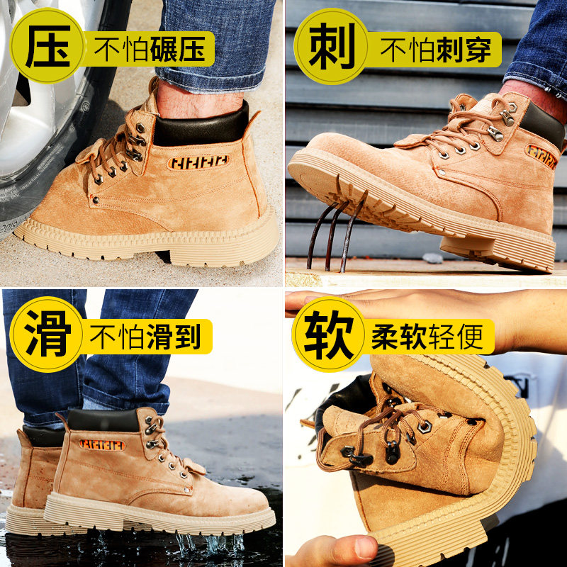 古伊萨劳保鞋男款士夏季透气高帮防砸防刺穿钢头带钢板老保工作鞋
