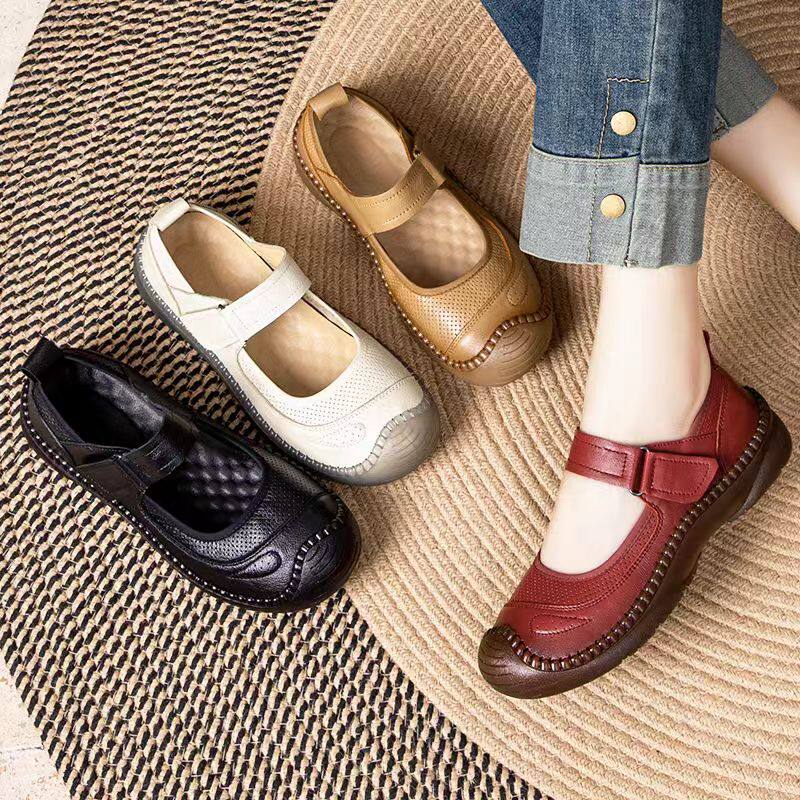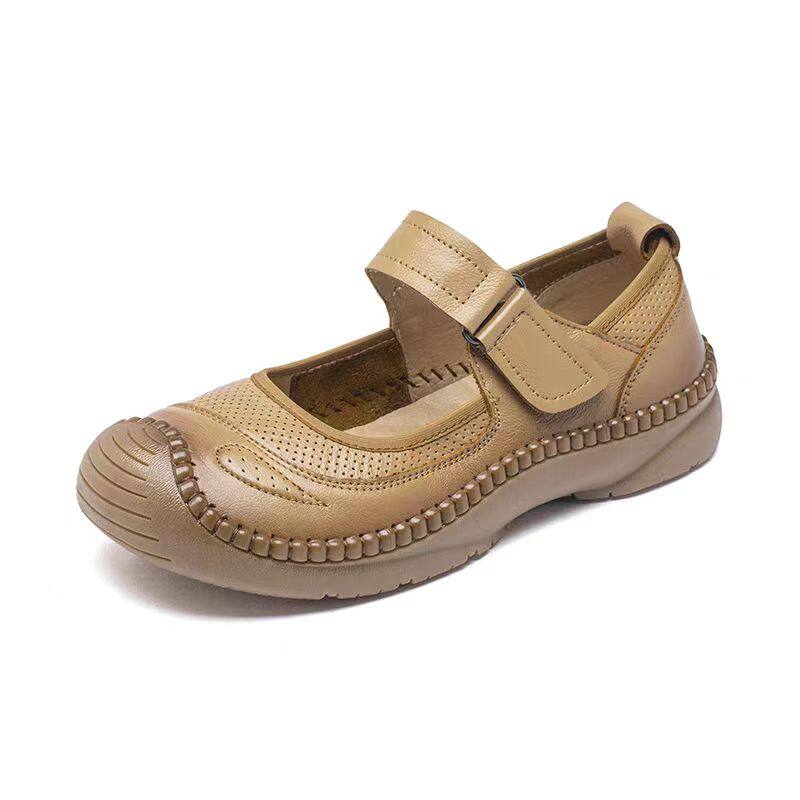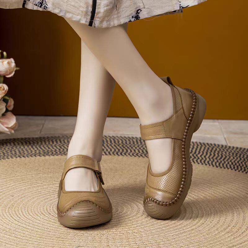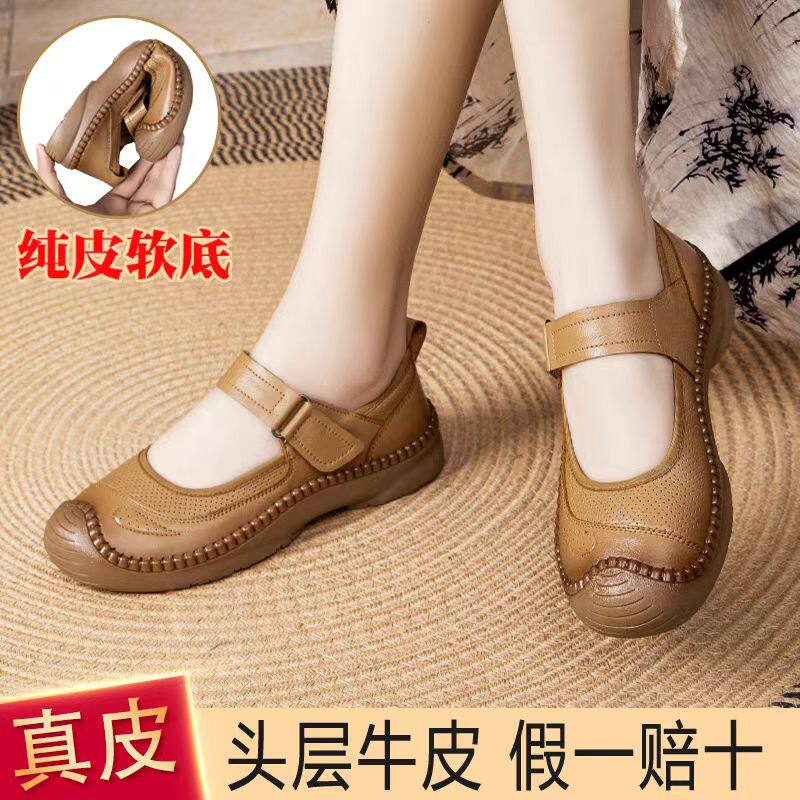 真皮妈妈鞋中老年舒适不累脚牛筋底防滑软底舒适轻便夏季浅口女鞋