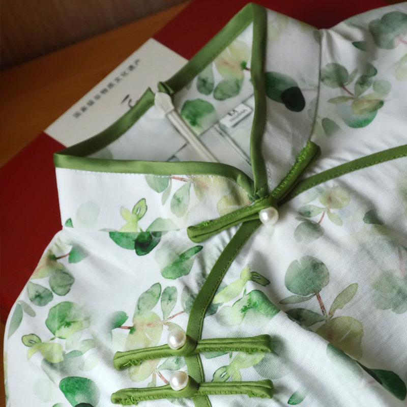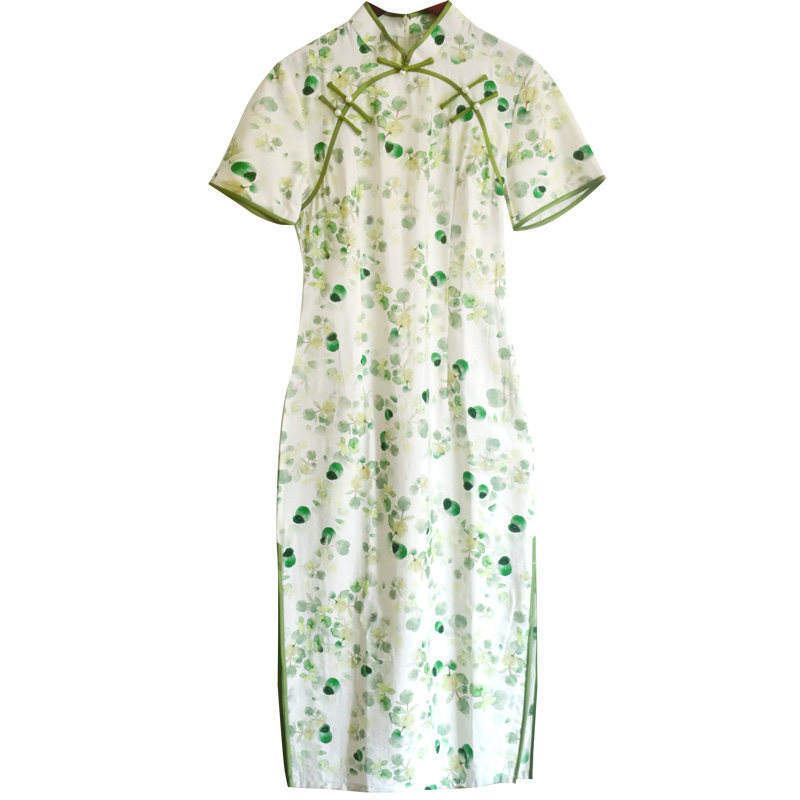 小清新少女旗袍夏季收腰显瘦古风丝麻日常中长款连衣裙学生田园风