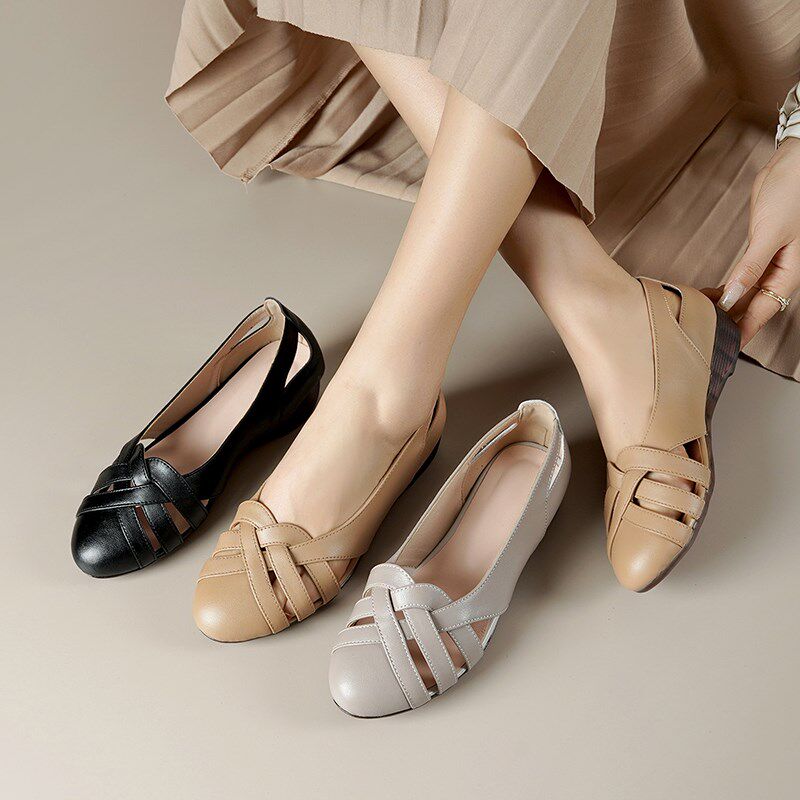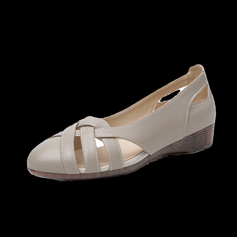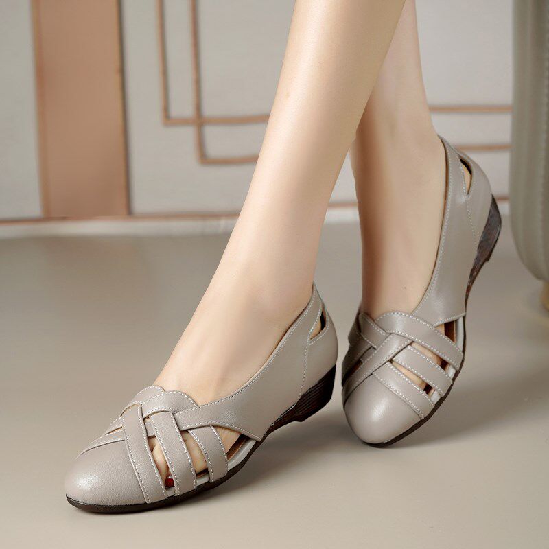 凉鞋女夏季真皮平底坡跟软底镂空女鞋中跟单鞋大码妈妈鞋软皮鞋子
