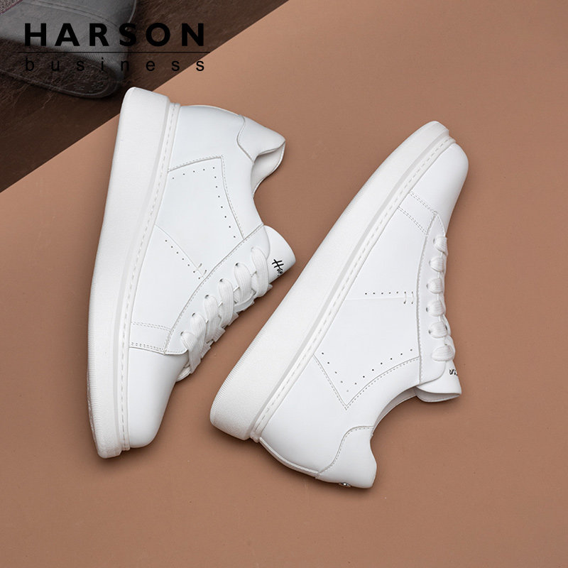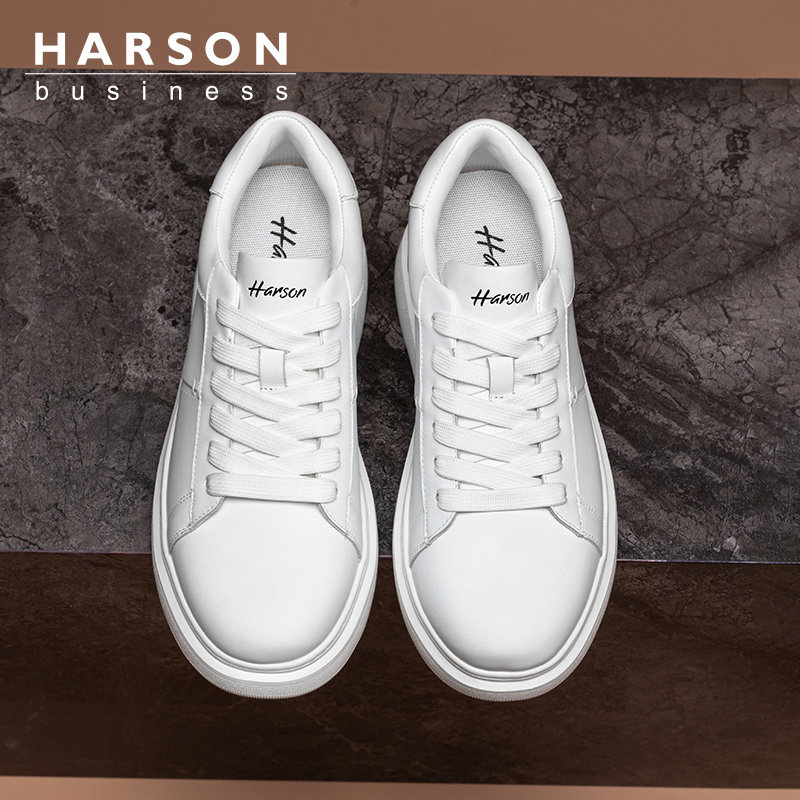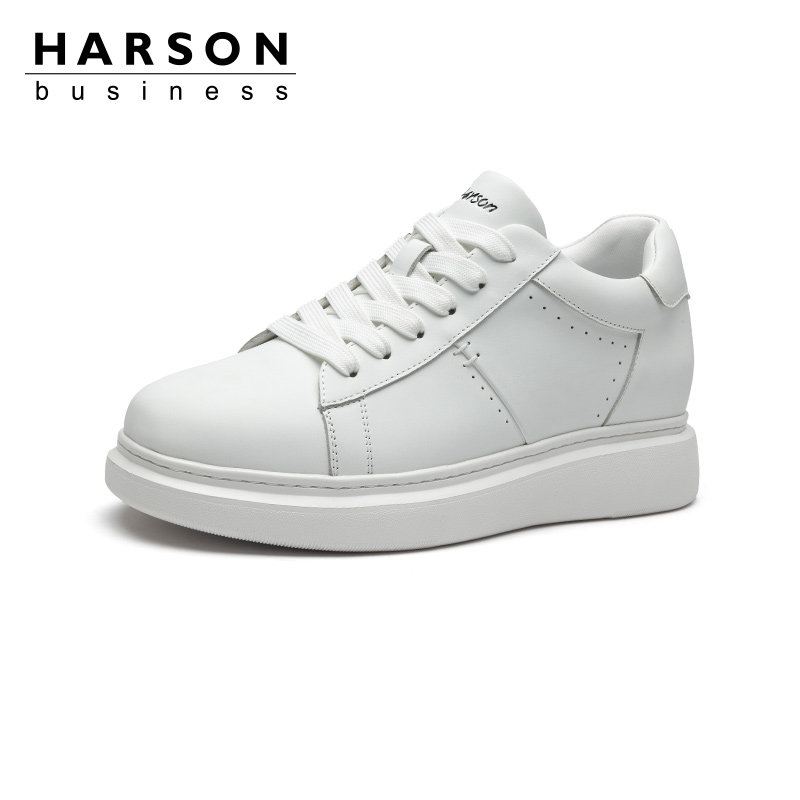 哈森男鞋春季2026新款小白鞋男款内增高厚底鞋子真皮透气休闲板鞋