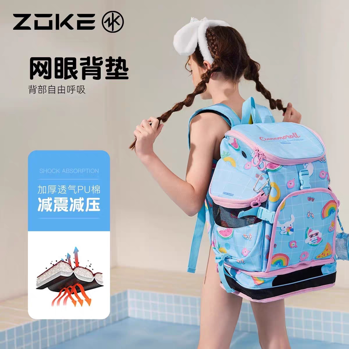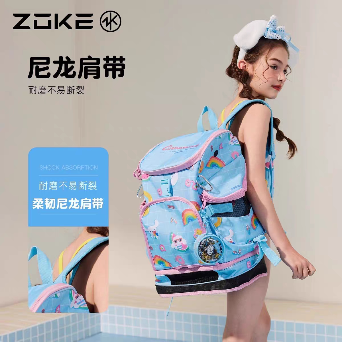 zoke洲克游泳包儿童专业训练包游泳收纳包双肩干湿分离独立鞋仓包
