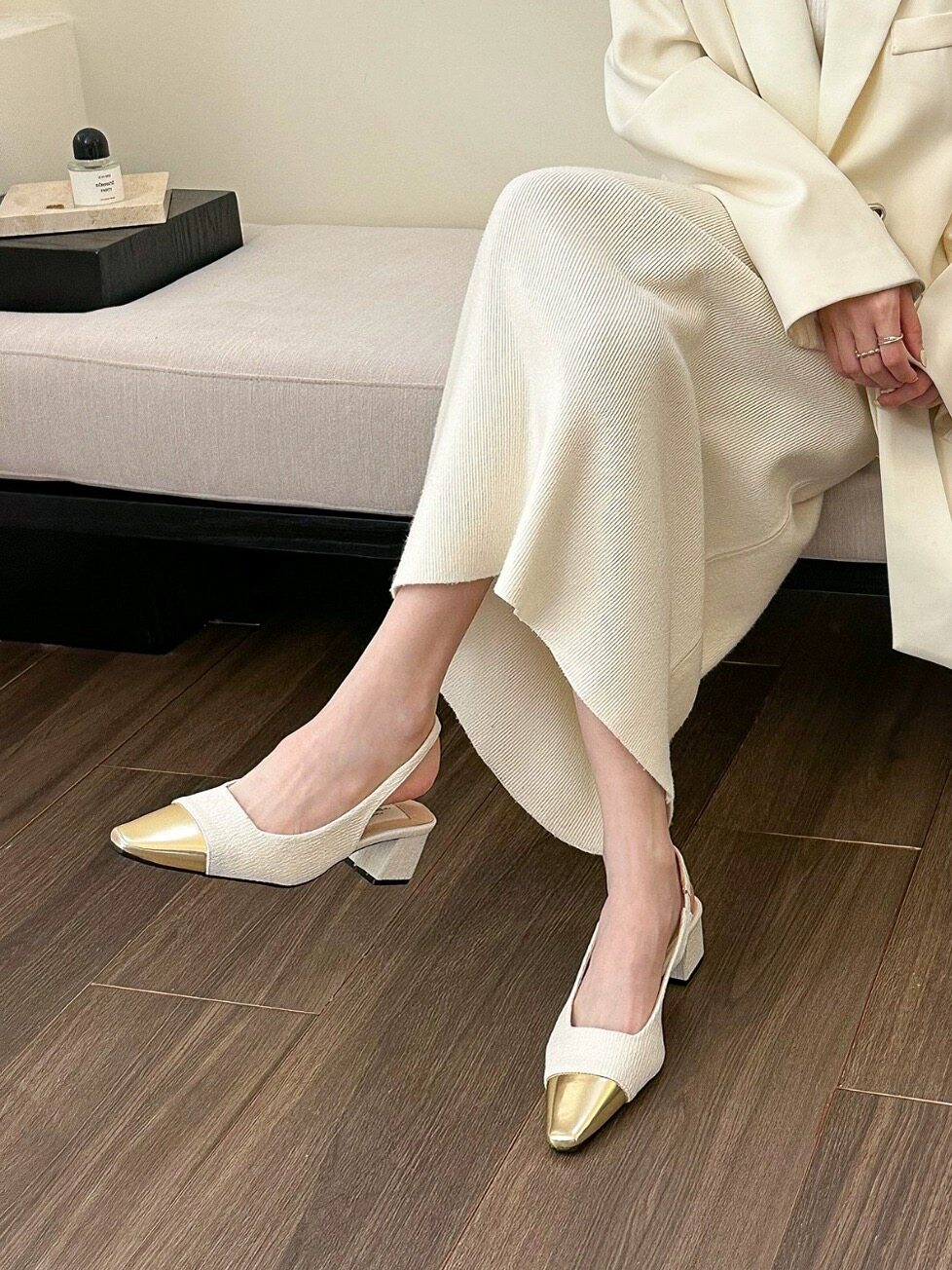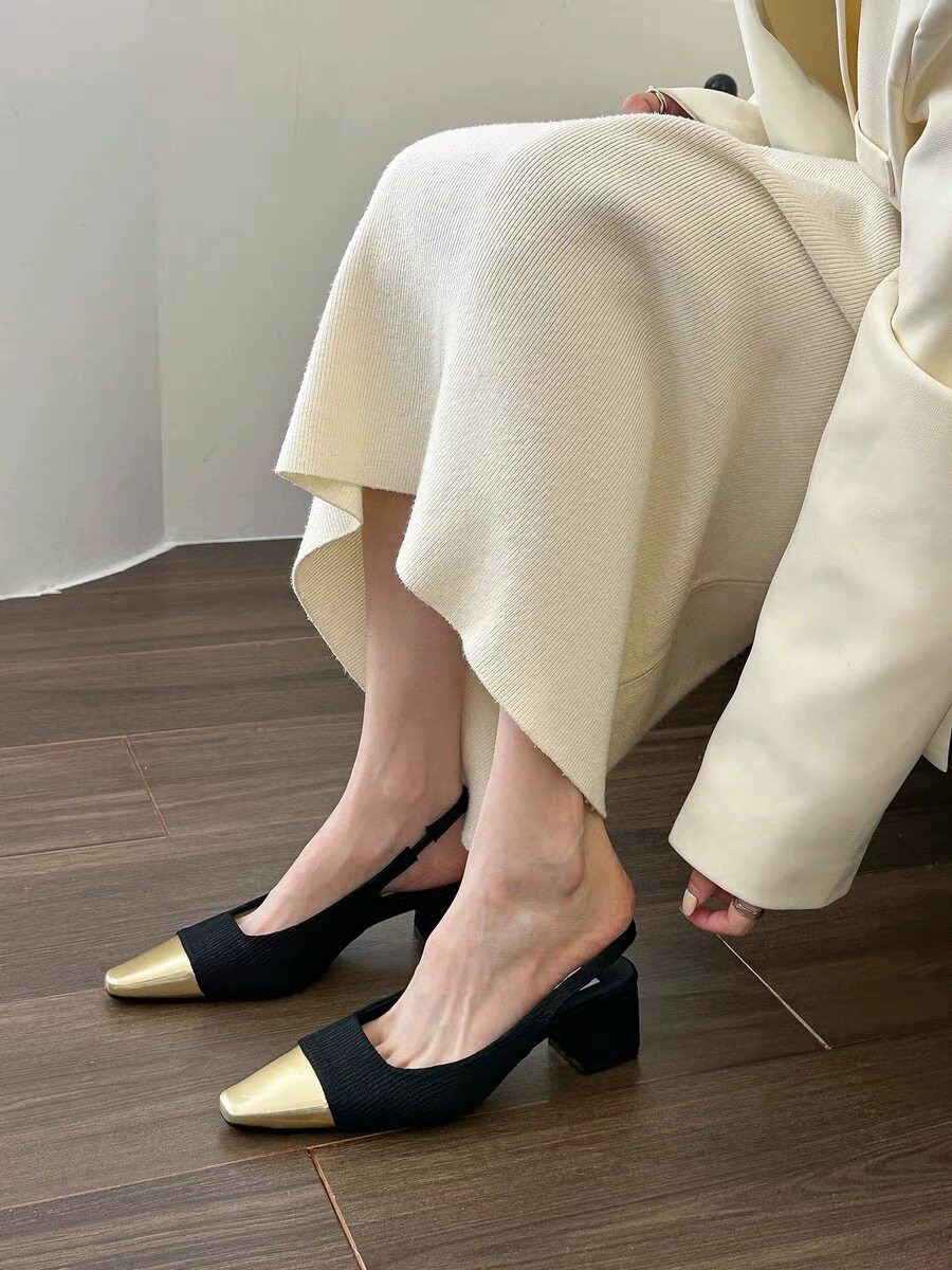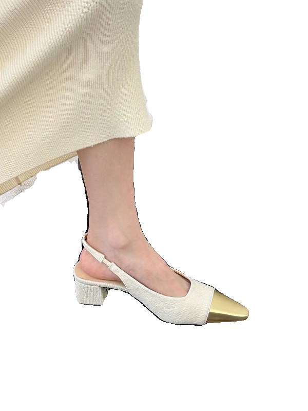 小香风粗跟高跟鞋法式小凉鞋女2024春夏季新款气质方头配裙子单鞋