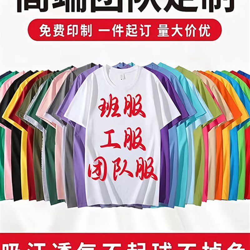 纯棉T恤工作服定制印logo聚会毕业短袖班服高考团体服圆领 有大码
