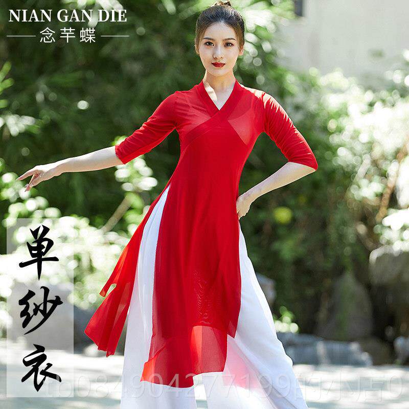 高档古舞练功服成人中国古风网纱典形体双层飘逸披肩演衣出女舞蹈