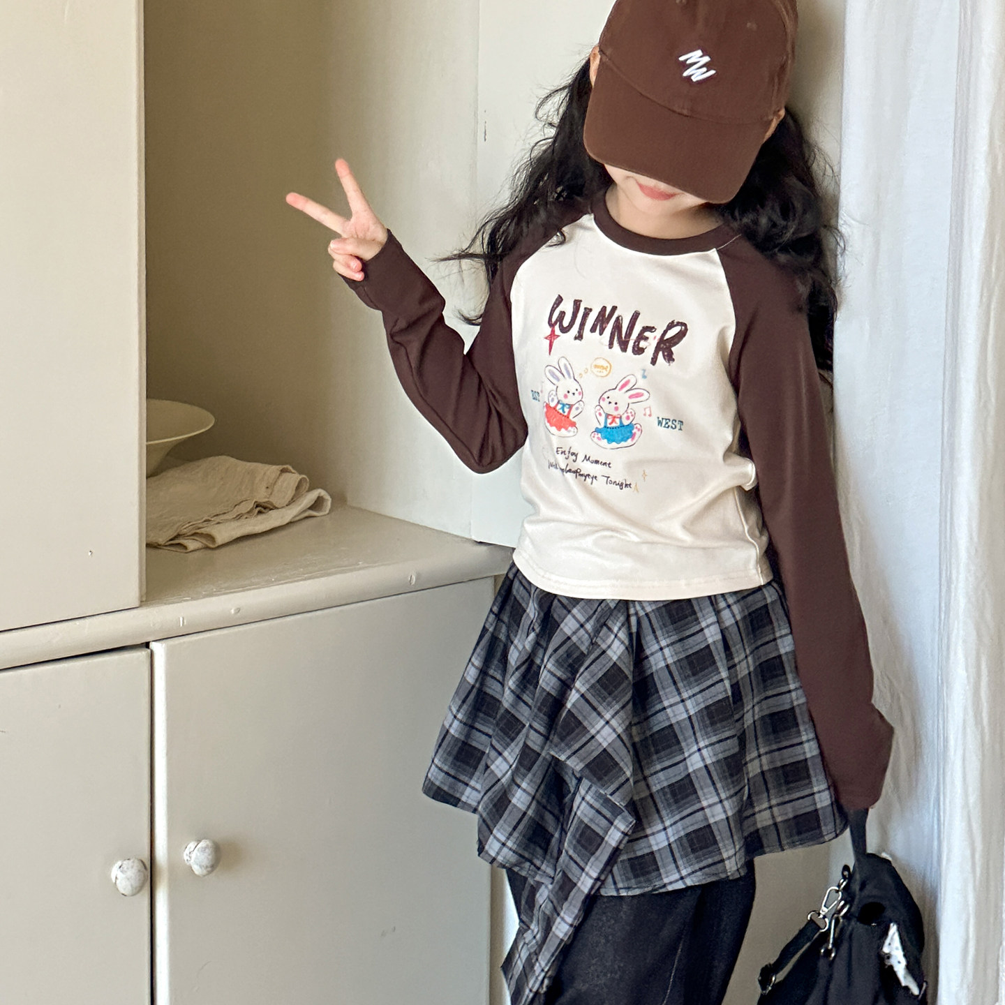 女童长袖T恤春装2026新款女大童插肩袖上衣初中生儿童春季打底衫