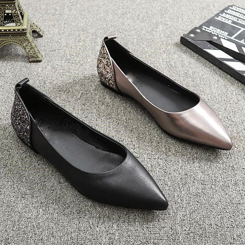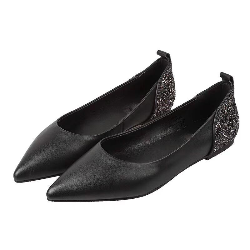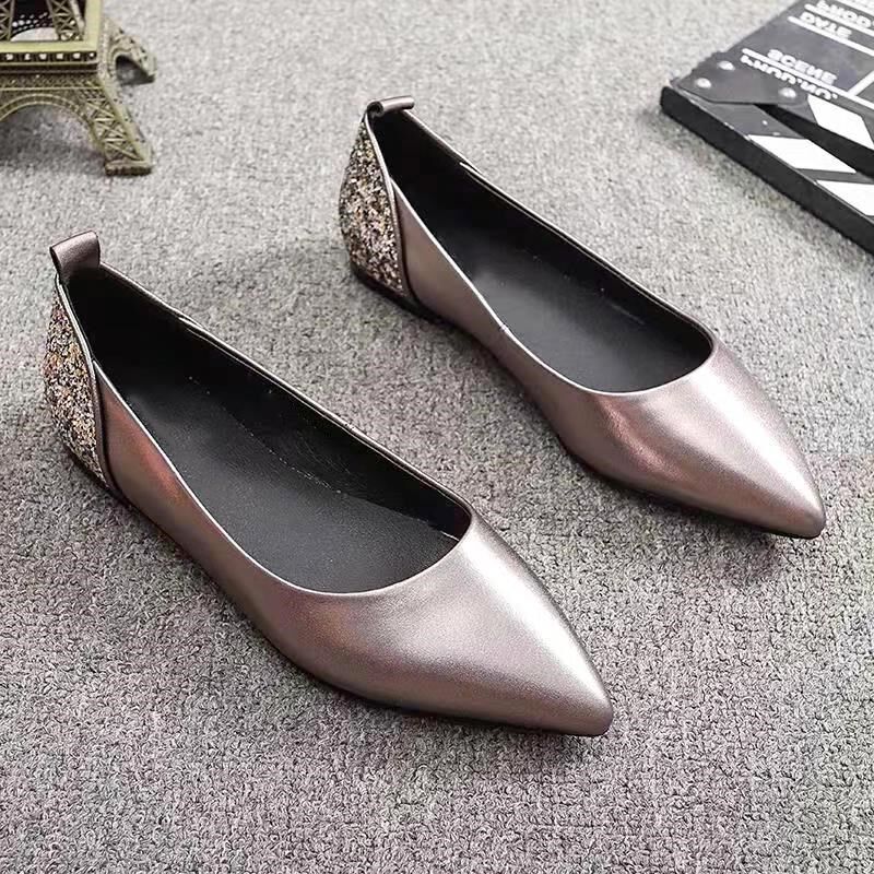 2025新款小码313233单鞋尖头平底拼色金粉料女鞋浅口时尚百搭大码