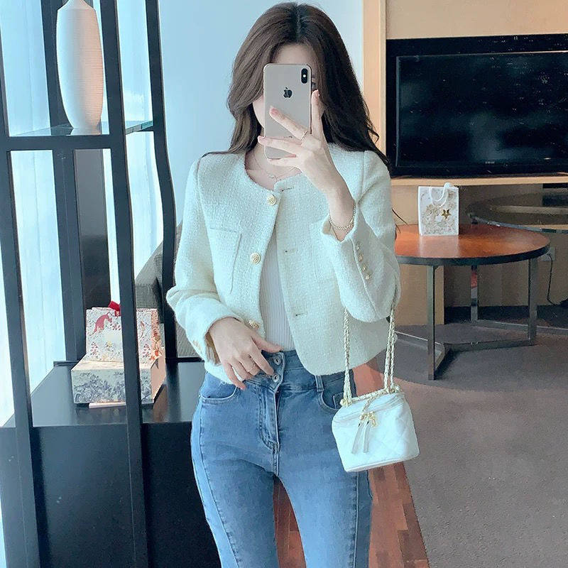 2026春秋新款高级感名媛气质短款粗花呢外套女法式chic小香风上衣