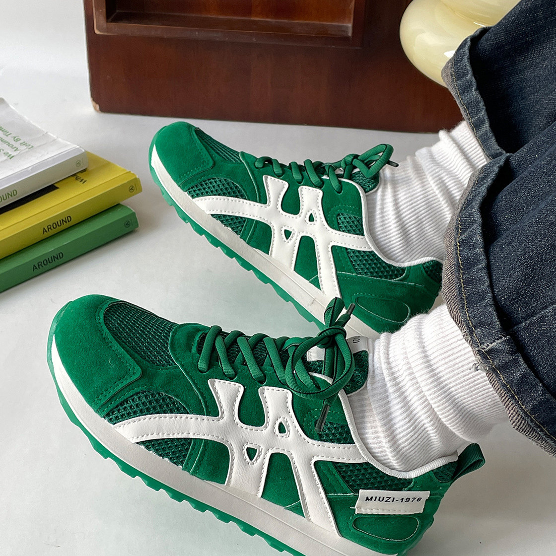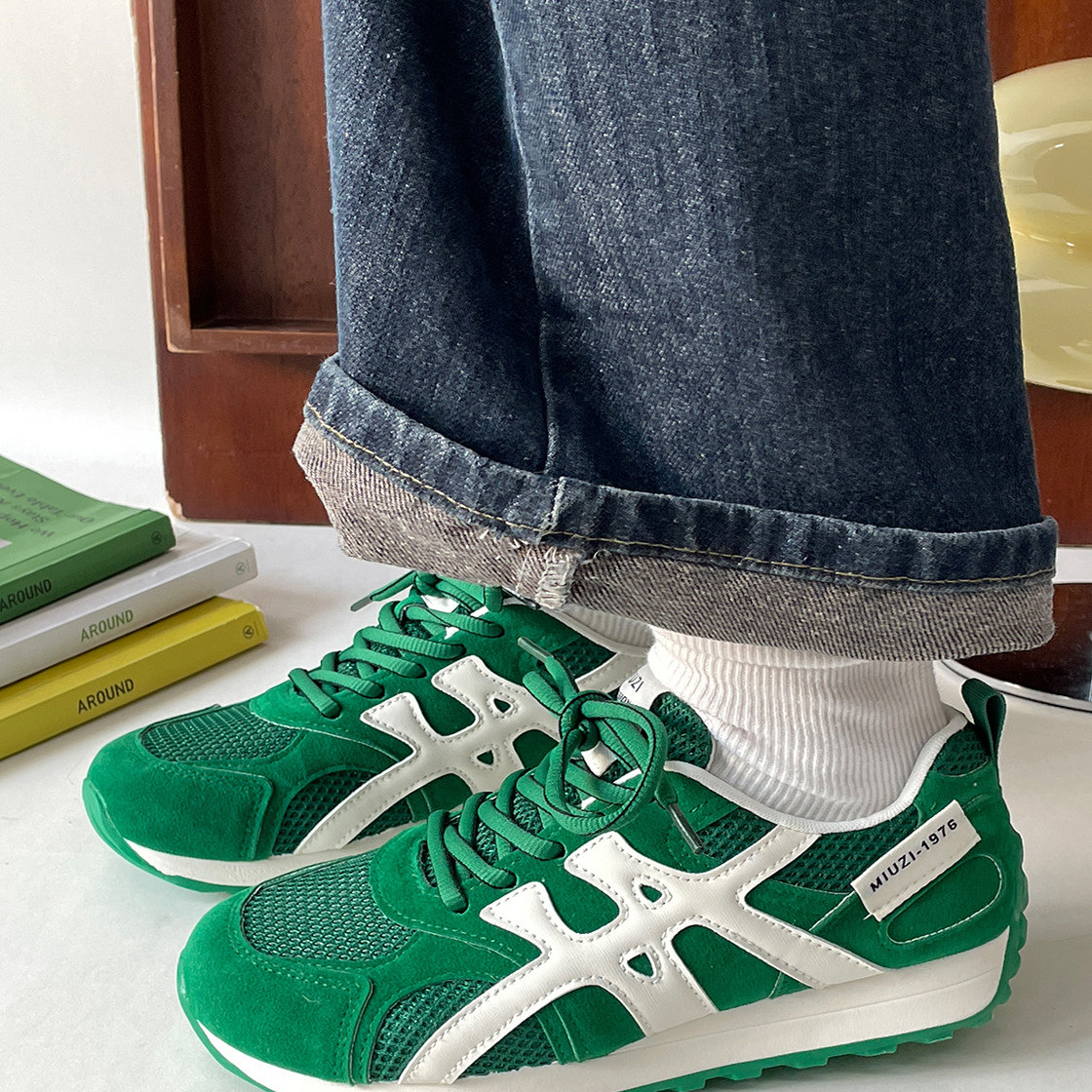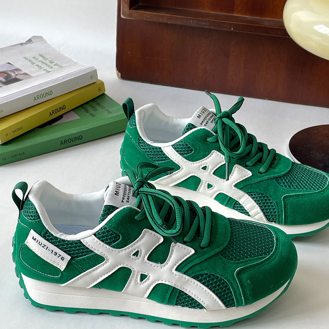 时尚绿色阿甘鞋女款2026新款网面透气跑步鞋软底不累脚运动休闲鞋