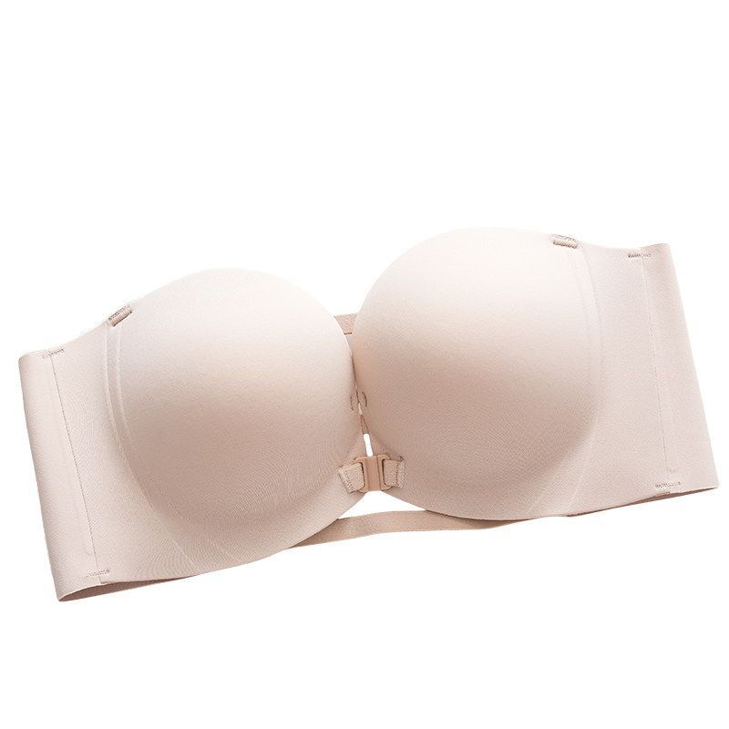 前扣无肩带内衣女美背小胸显大加厚8cm超厚6cm防滑聚拢抹胸文胸罩