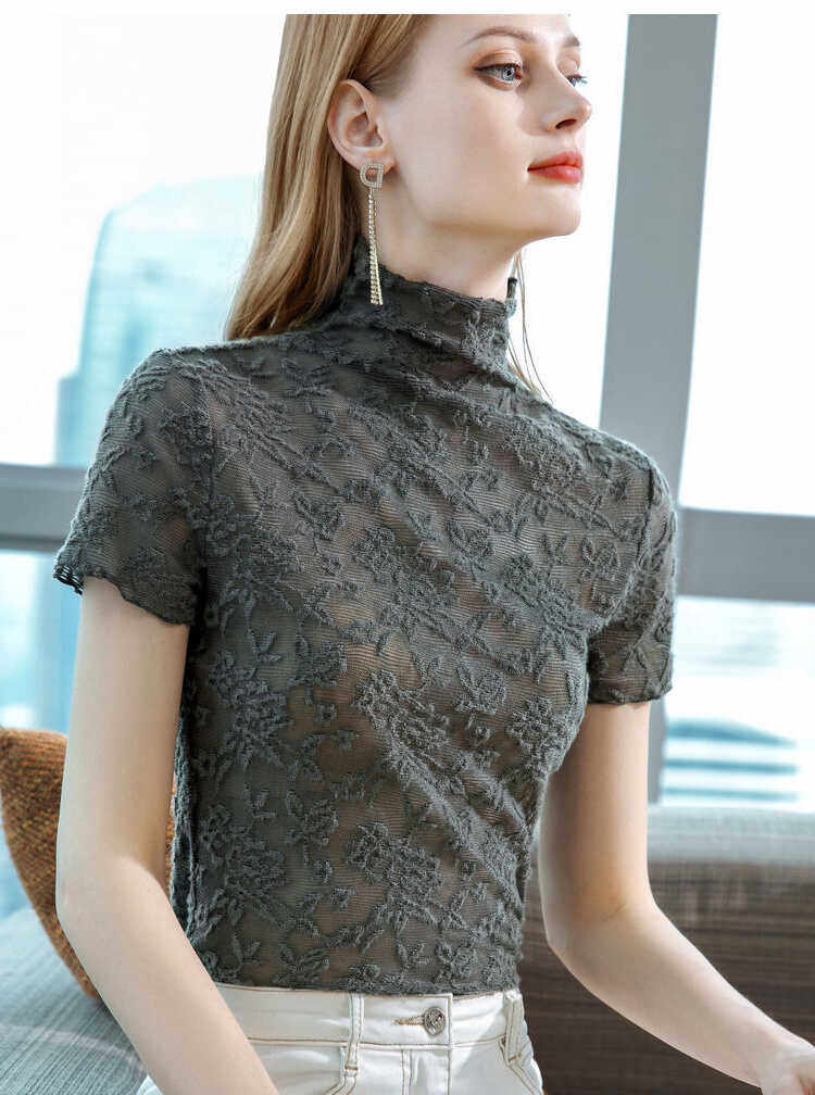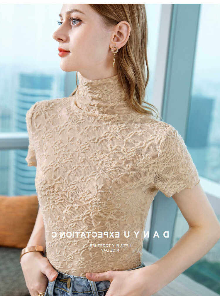 2026年新款修身微透花型蕾丝衫内搭短袖高领打底衫女春款女装上衣