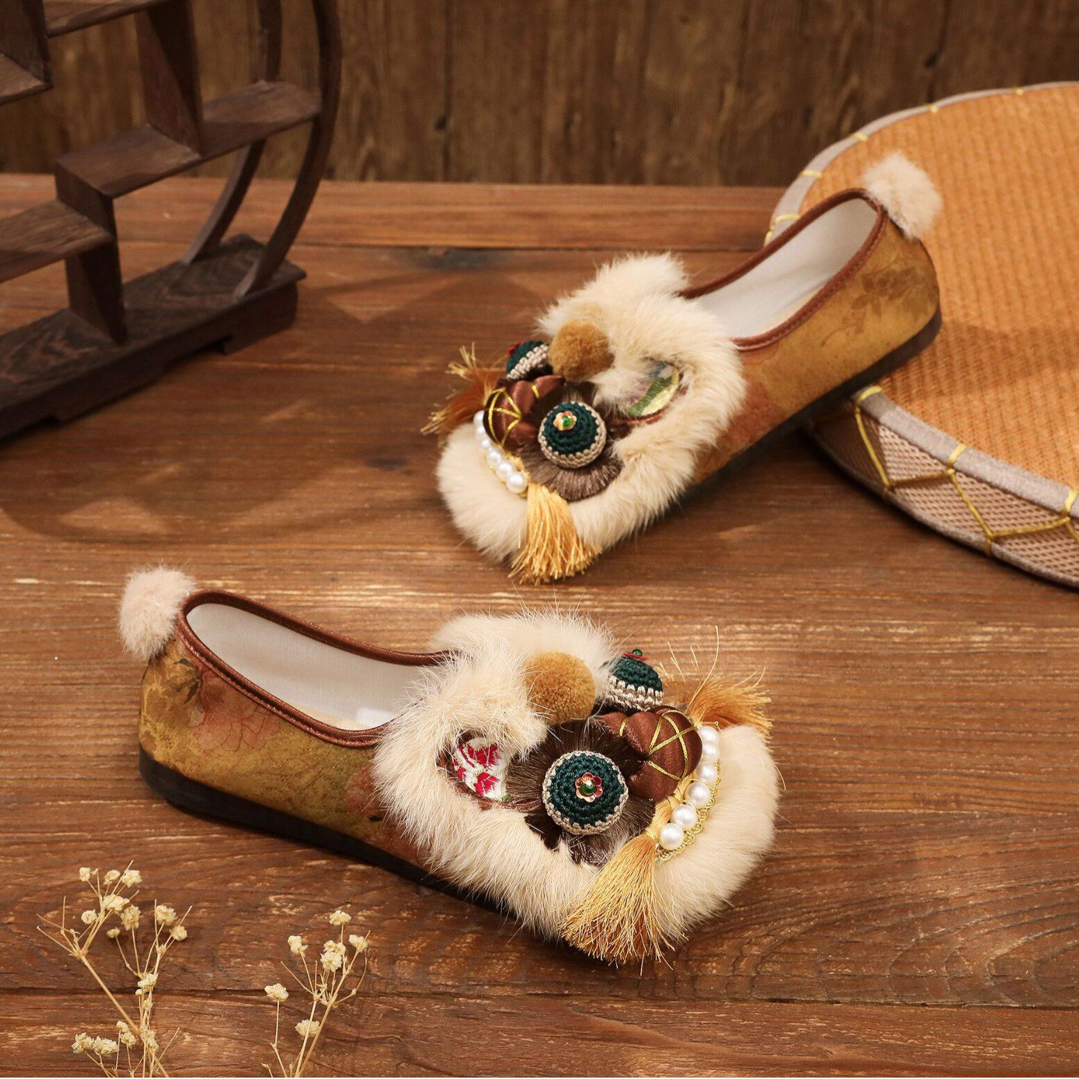 2026早春新款沙棕色虎头鞋国风布鞋手工绣花鞋春季单鞋国潮女鞋子