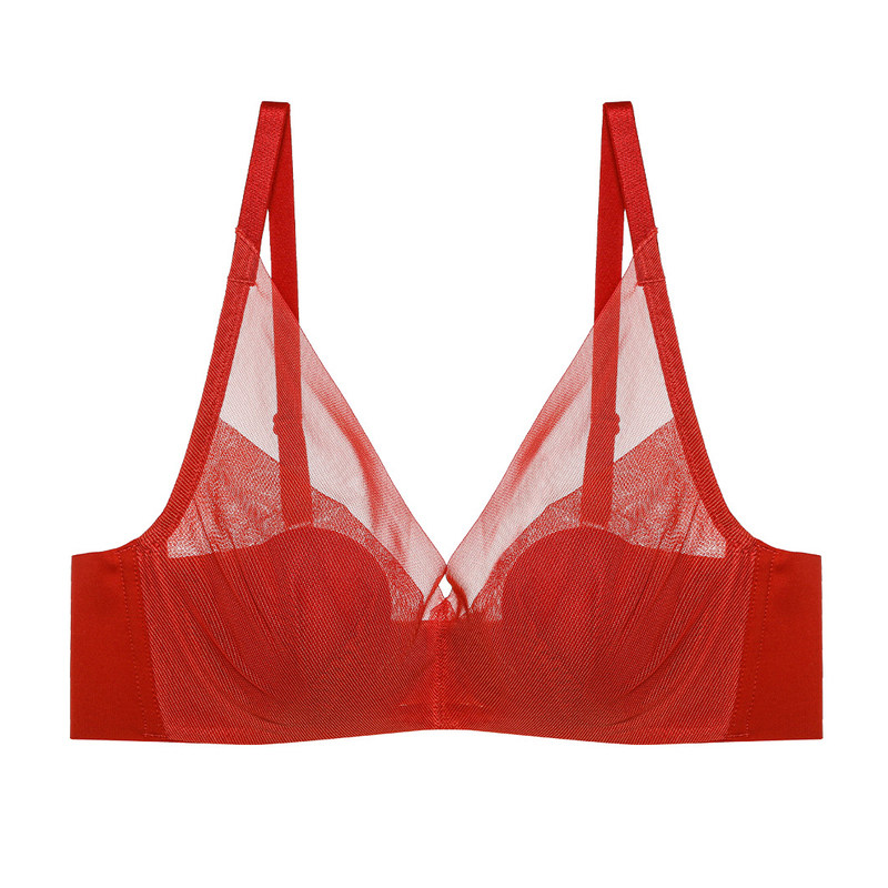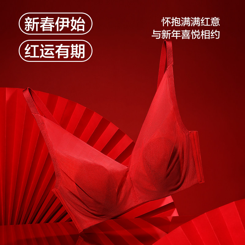 爱慕内衣官方正品牌正品红色结婚新娘超薄大胸显小全罩杯文胸胸罩