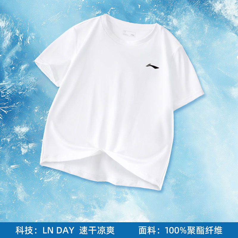 李宁凉感运动短袖简约T恤男童大童女童夏季舒适速干透气运动上衣