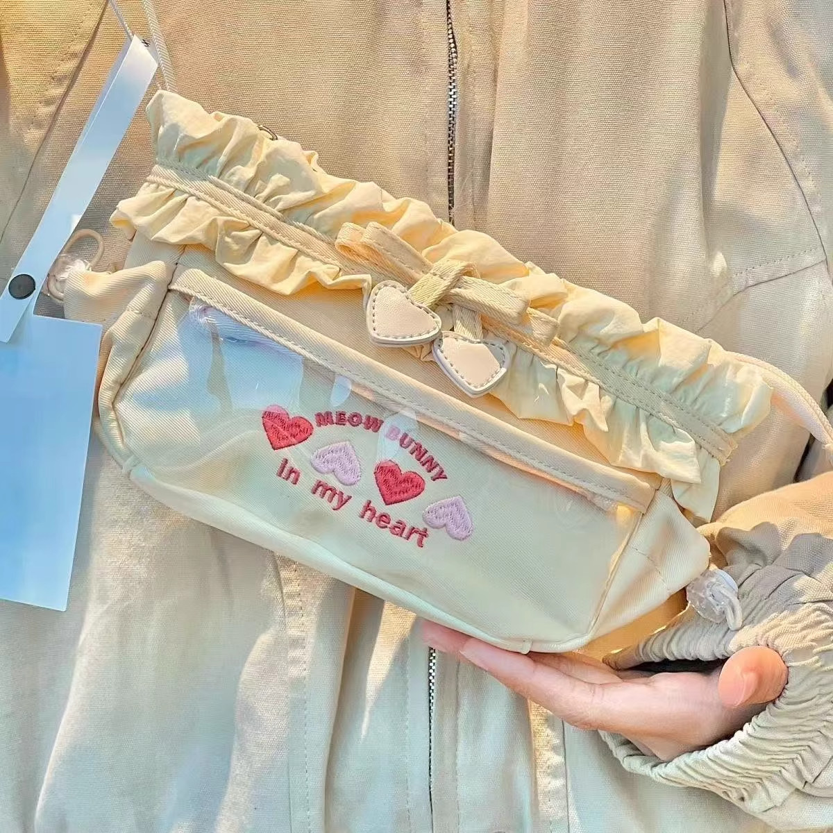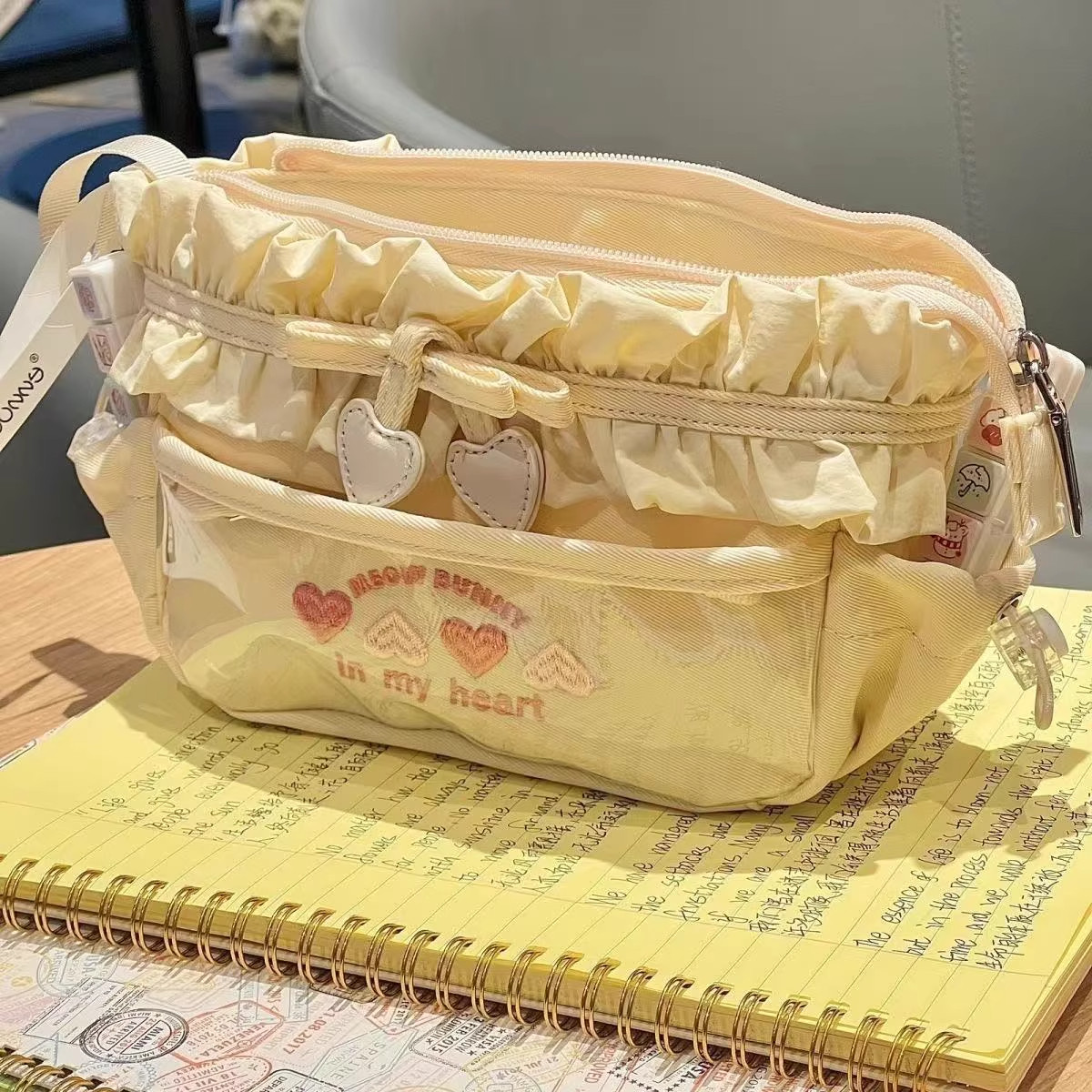 芝士奶黄色前透明笔袋大容量多层文具盒高颜值手提铅笔盒刺绣痛包
