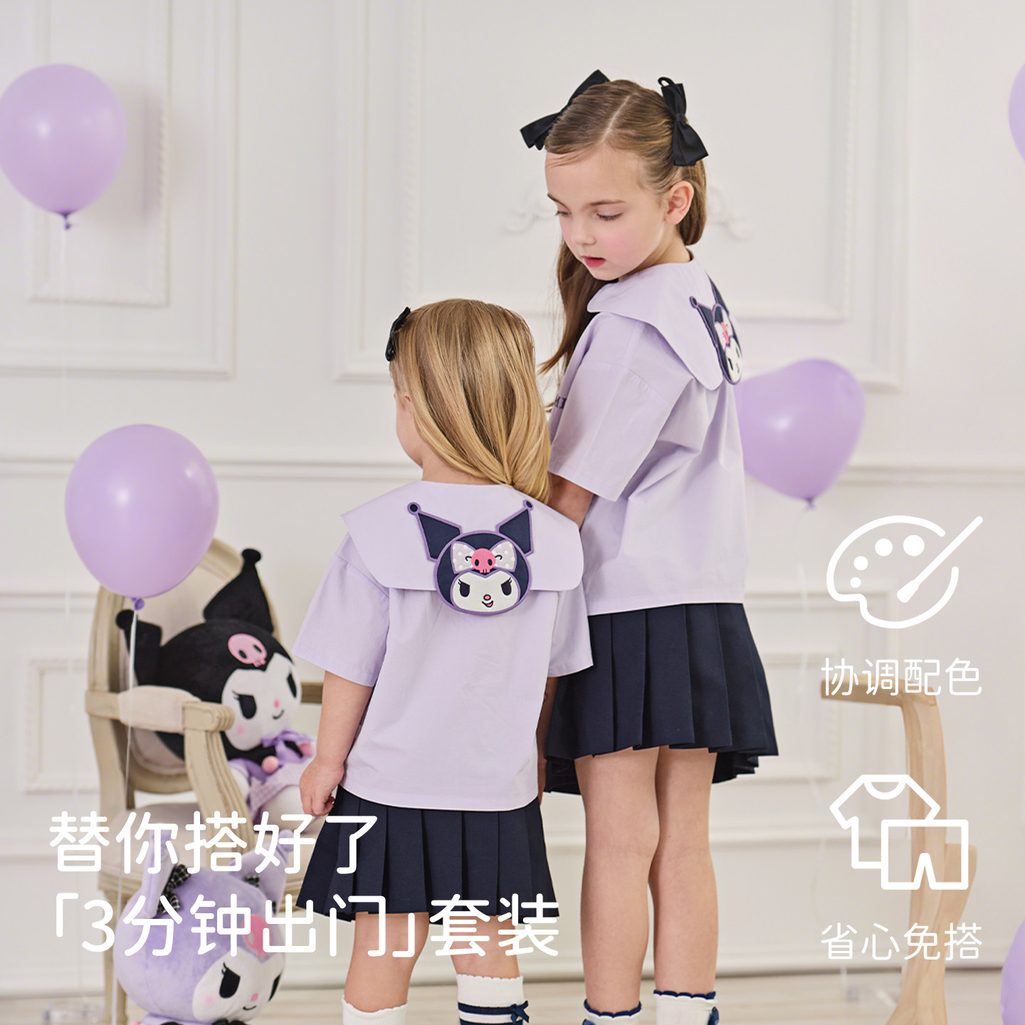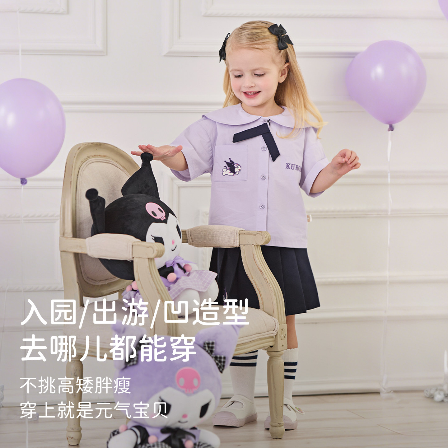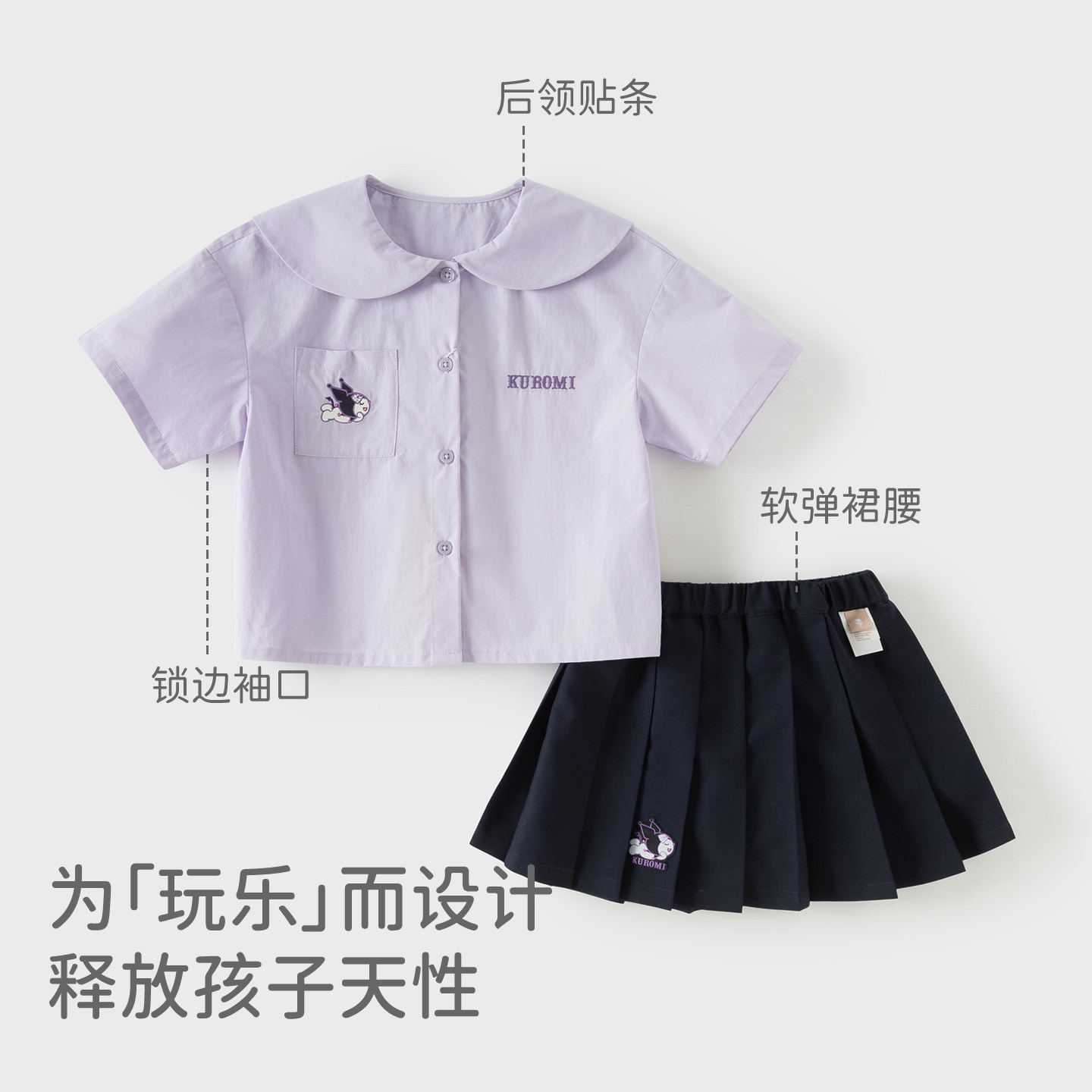 库洛米联名戴维贝拉儿童短袖衬衫半裙套装女童2026新款大童夏装
