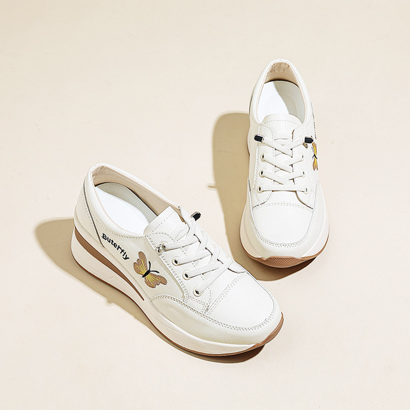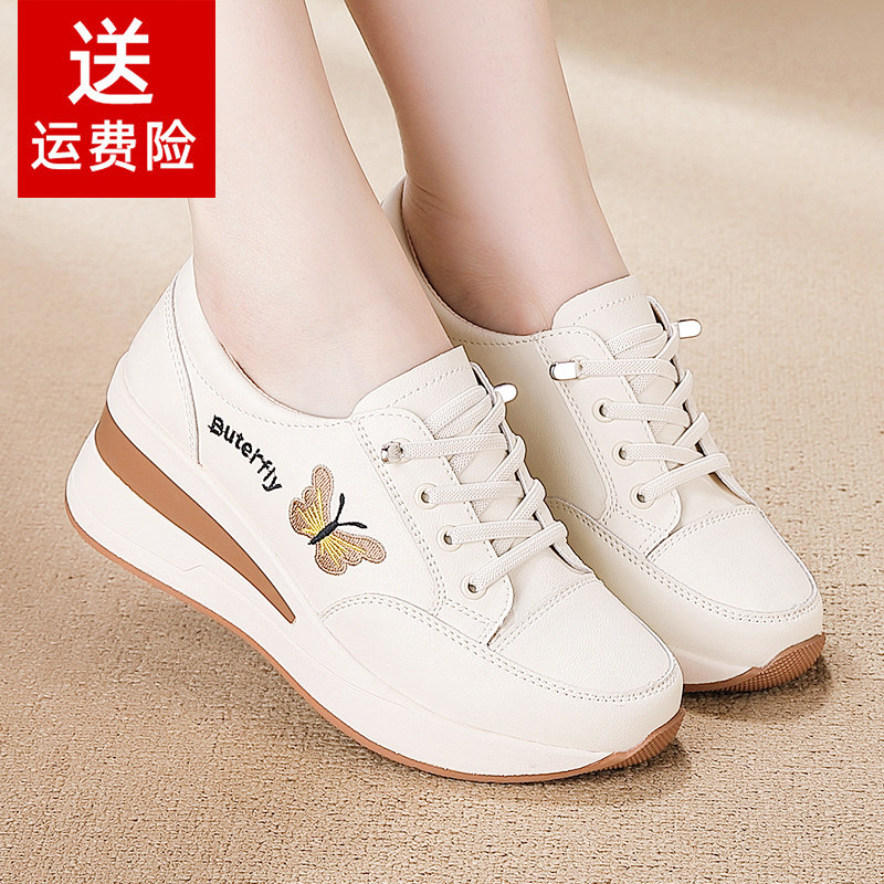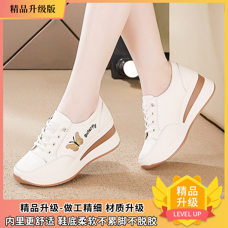 品牌内增高女鞋小个子厚底坡跟轻便舒适软底不累脚休闲百搭小白鞋