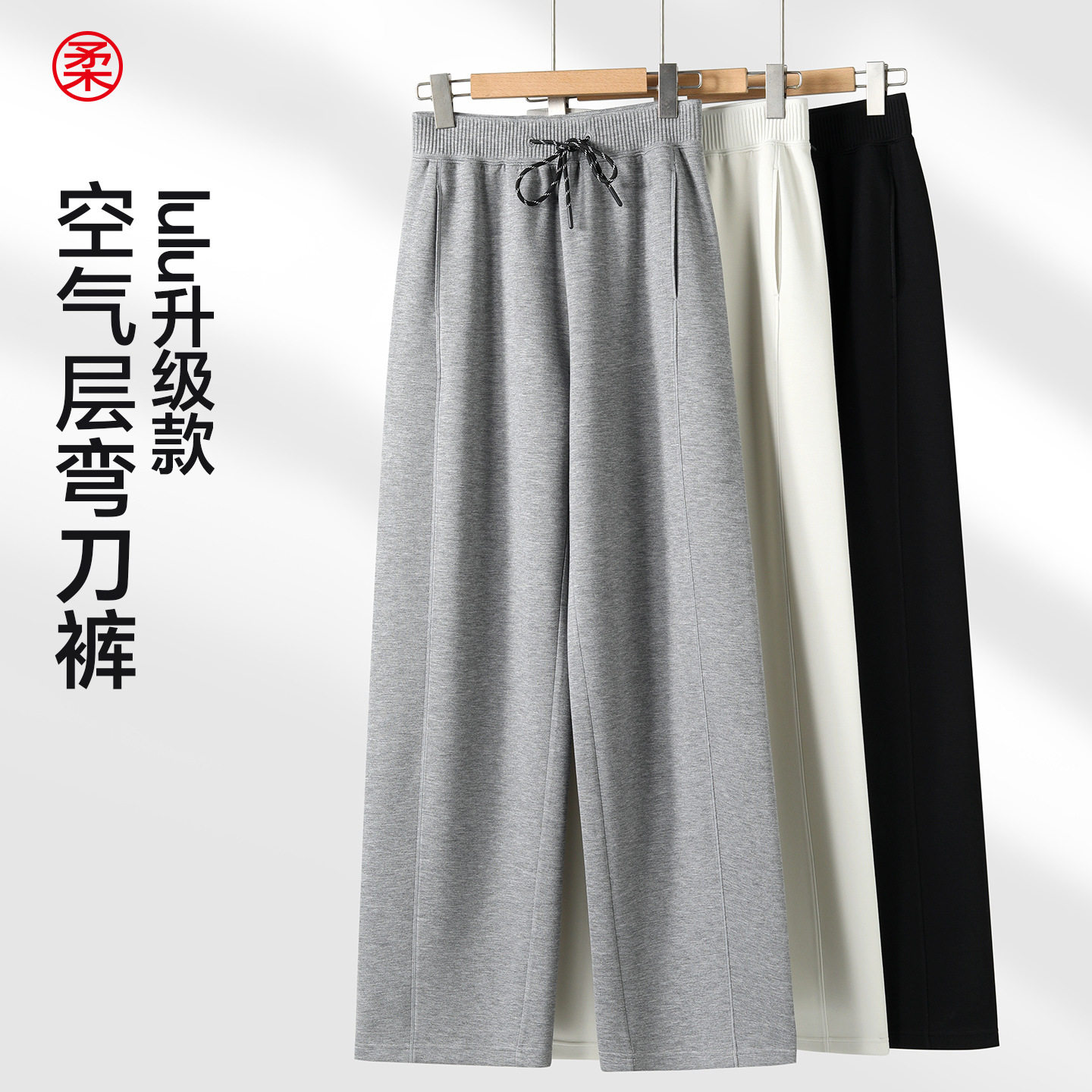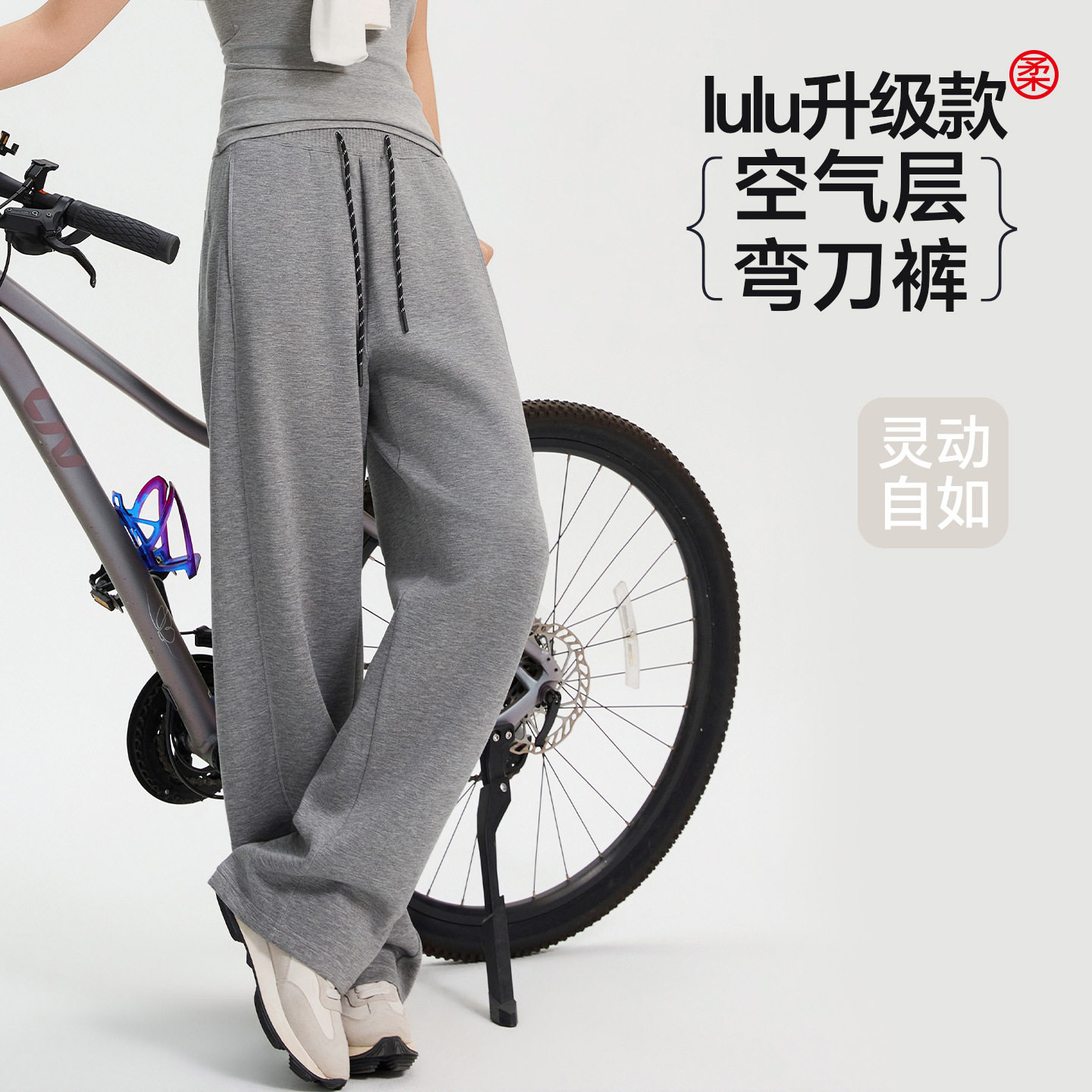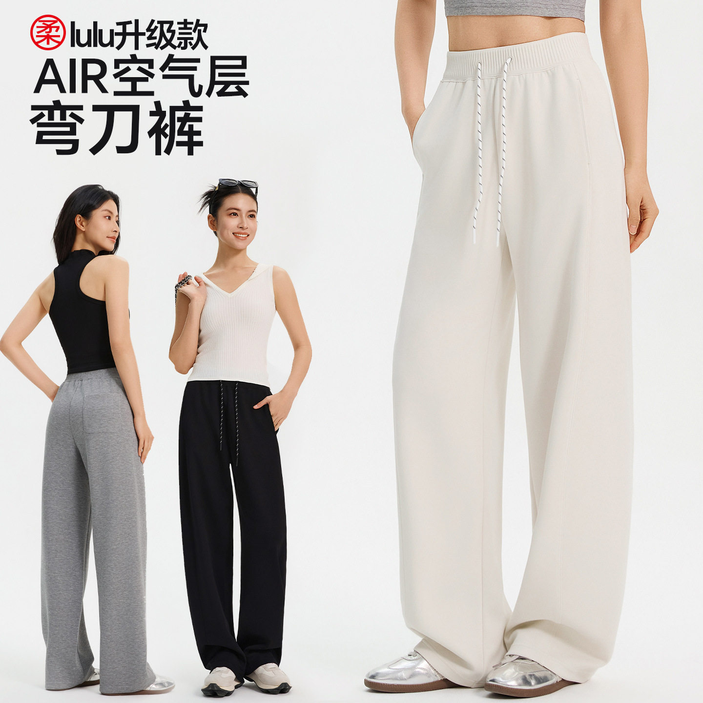 2026春秋新款lulu同款百褶腰弯刀运动裤子女款空气层直筒休闲卫裤