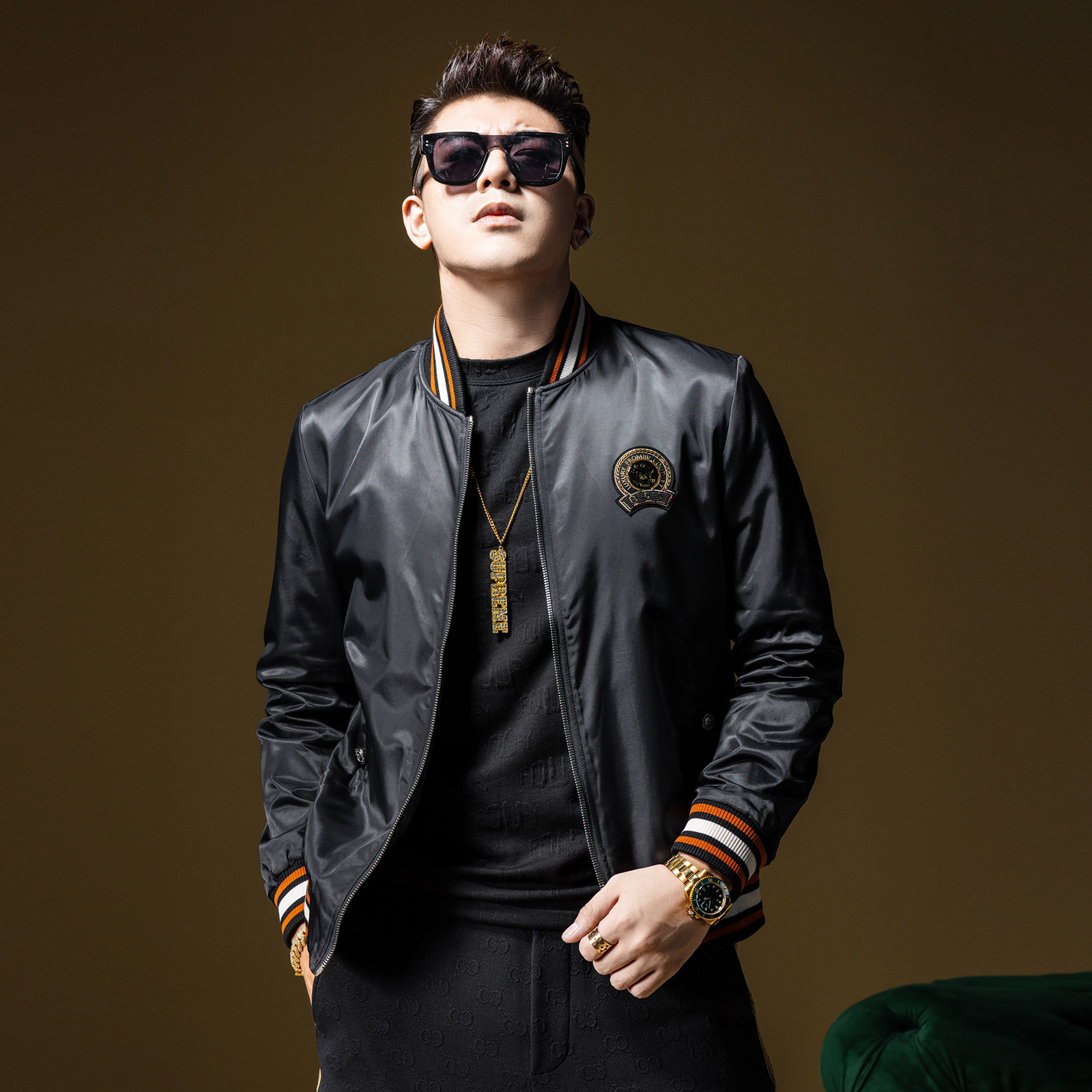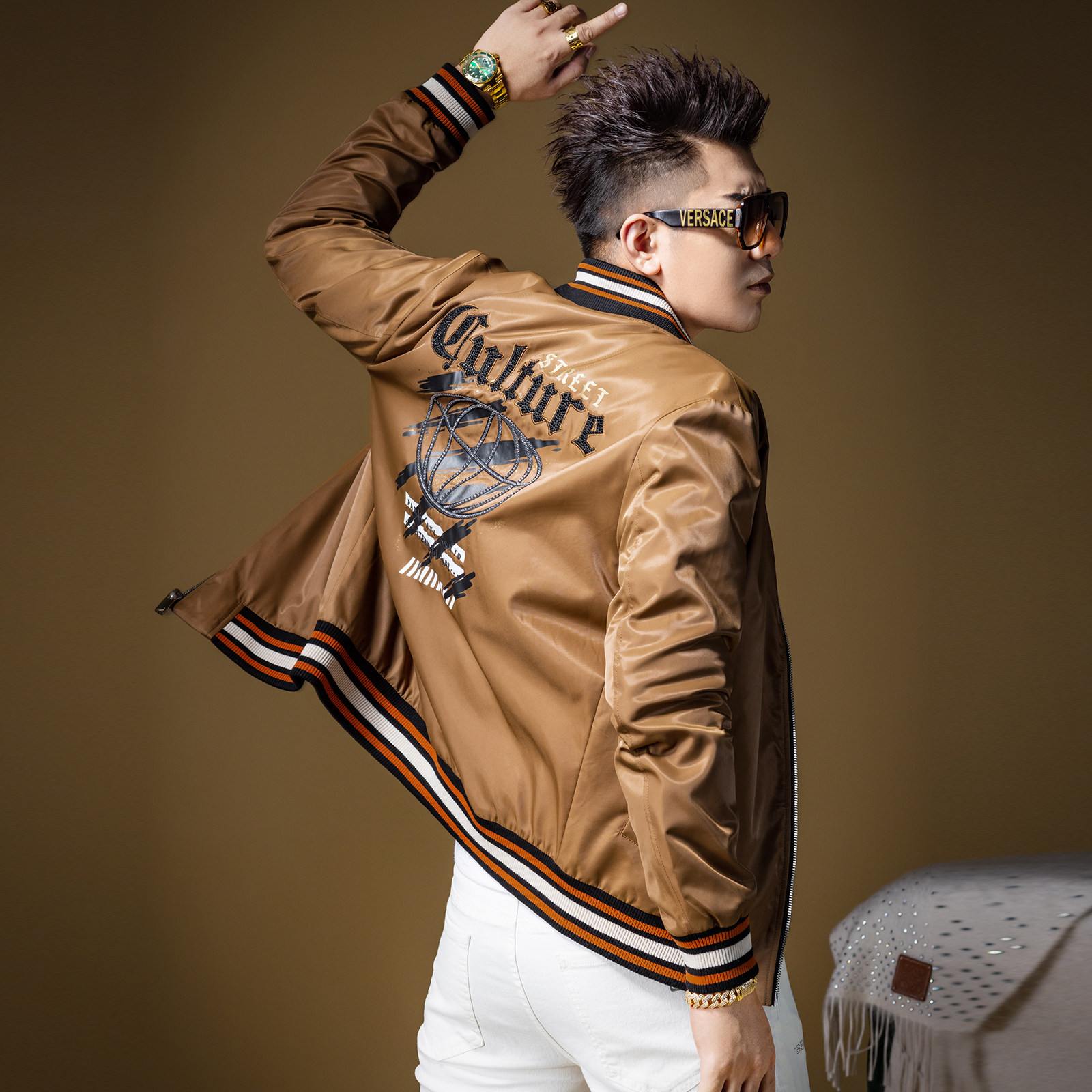 BM烫钻欧货男士外套秋冬季高级感潮牌夹克夹棉棒球服男款痞帅棉服