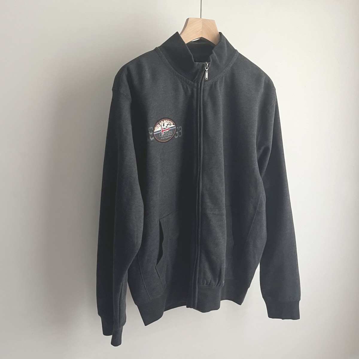 出口美国 春季男款内抓绒字母刺绣立领全拉链大码外套卫衣