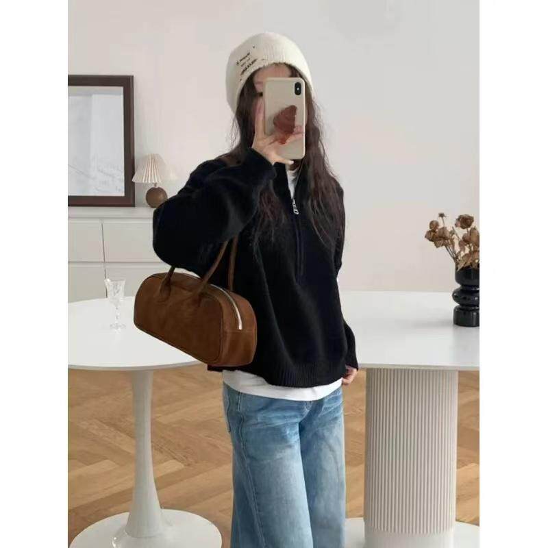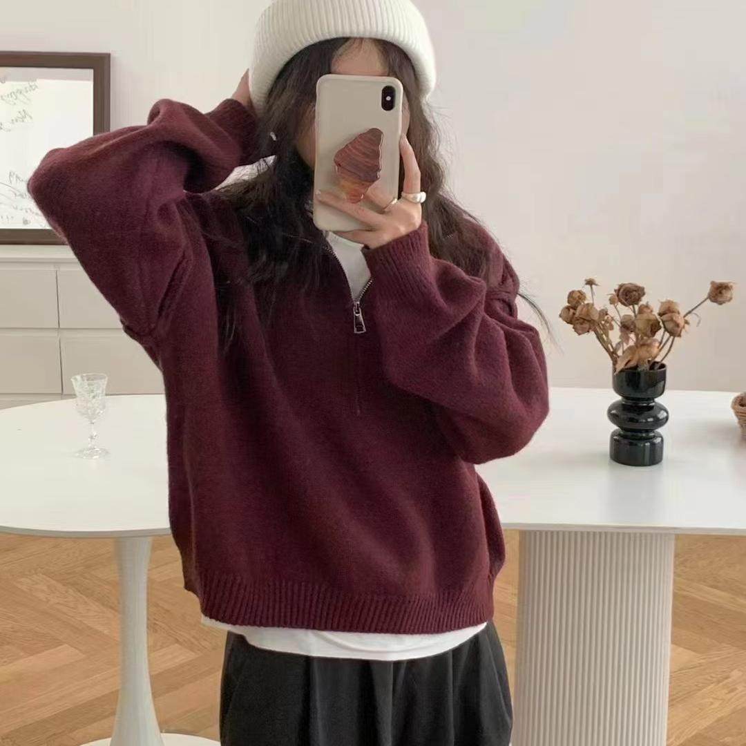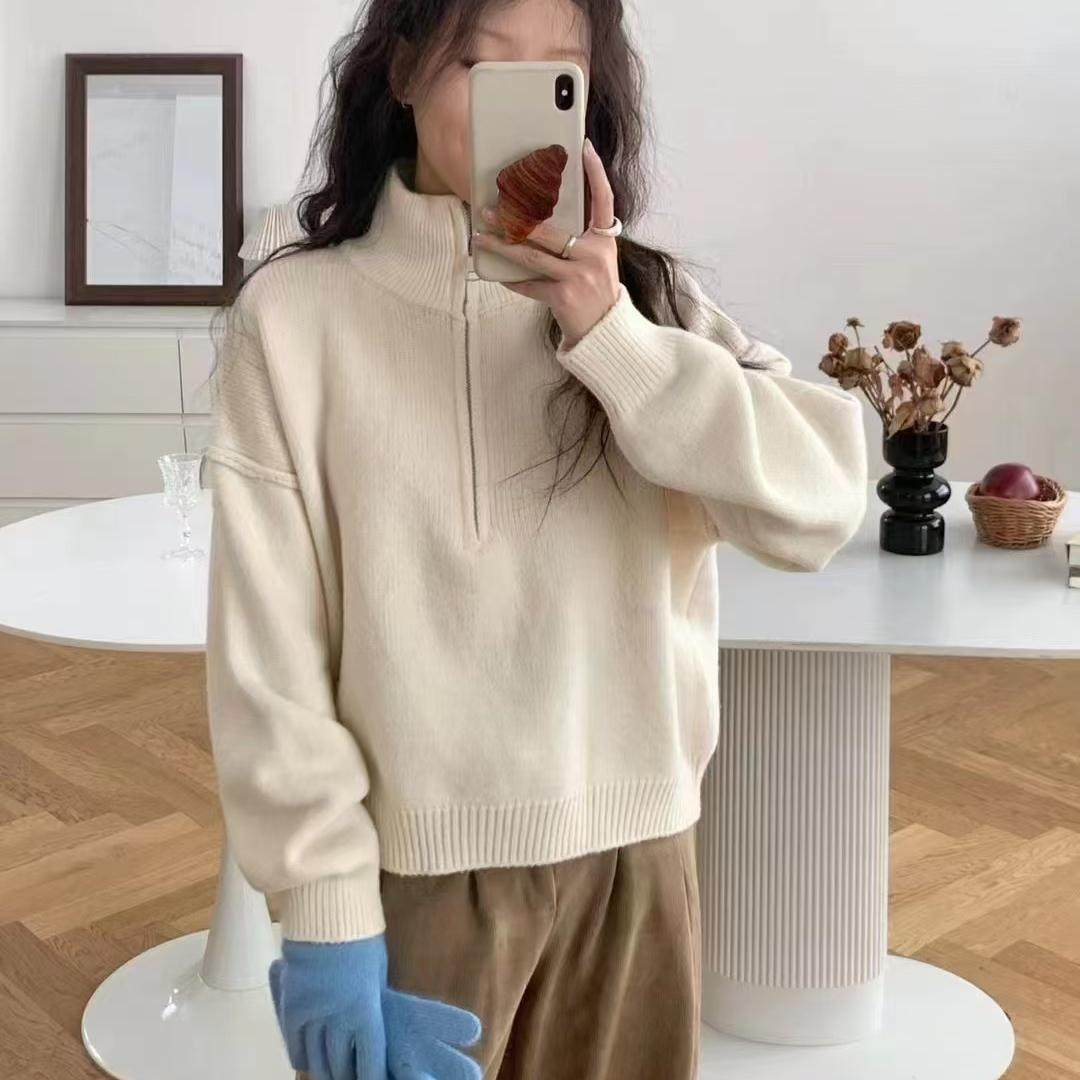 春装加厚女士半拉链毛衣女款2025新款爆款秋冬内搭打底衫上衣外套