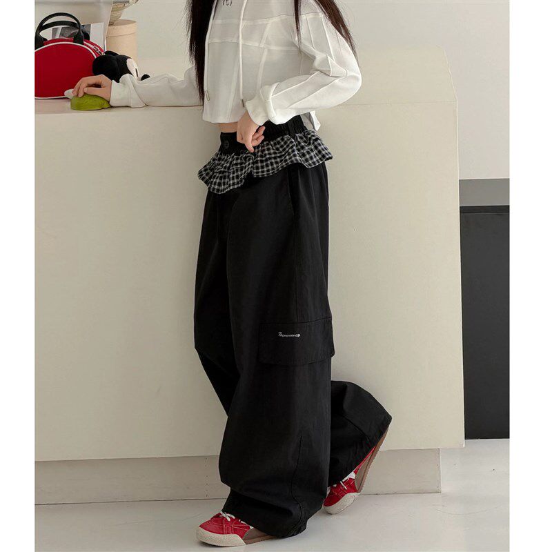 女童裤子春装2026新款女大童春季花边工装裤青少年女孩宽松休闲裤
