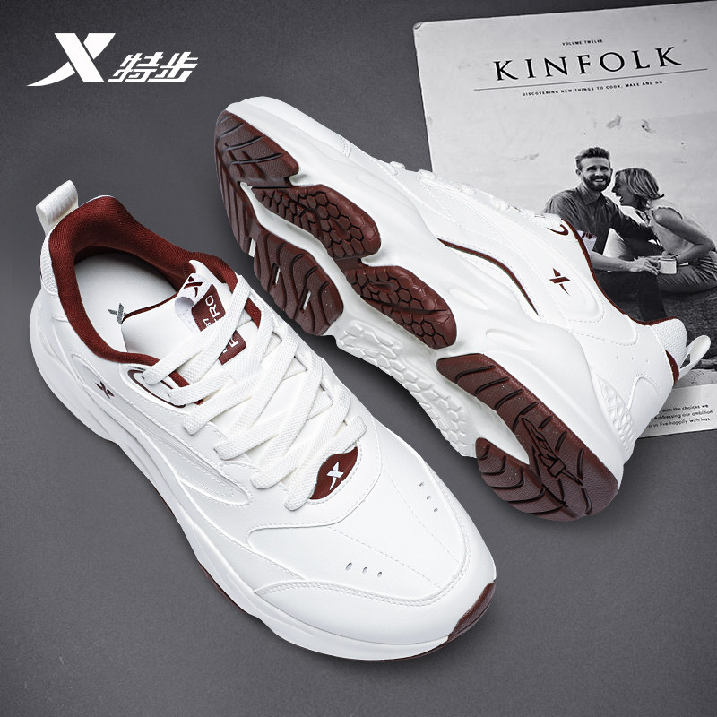 特步男鞋防滑减震跑步鞋2026新款夏季休闲鞋子男款皮面防水运动鞋